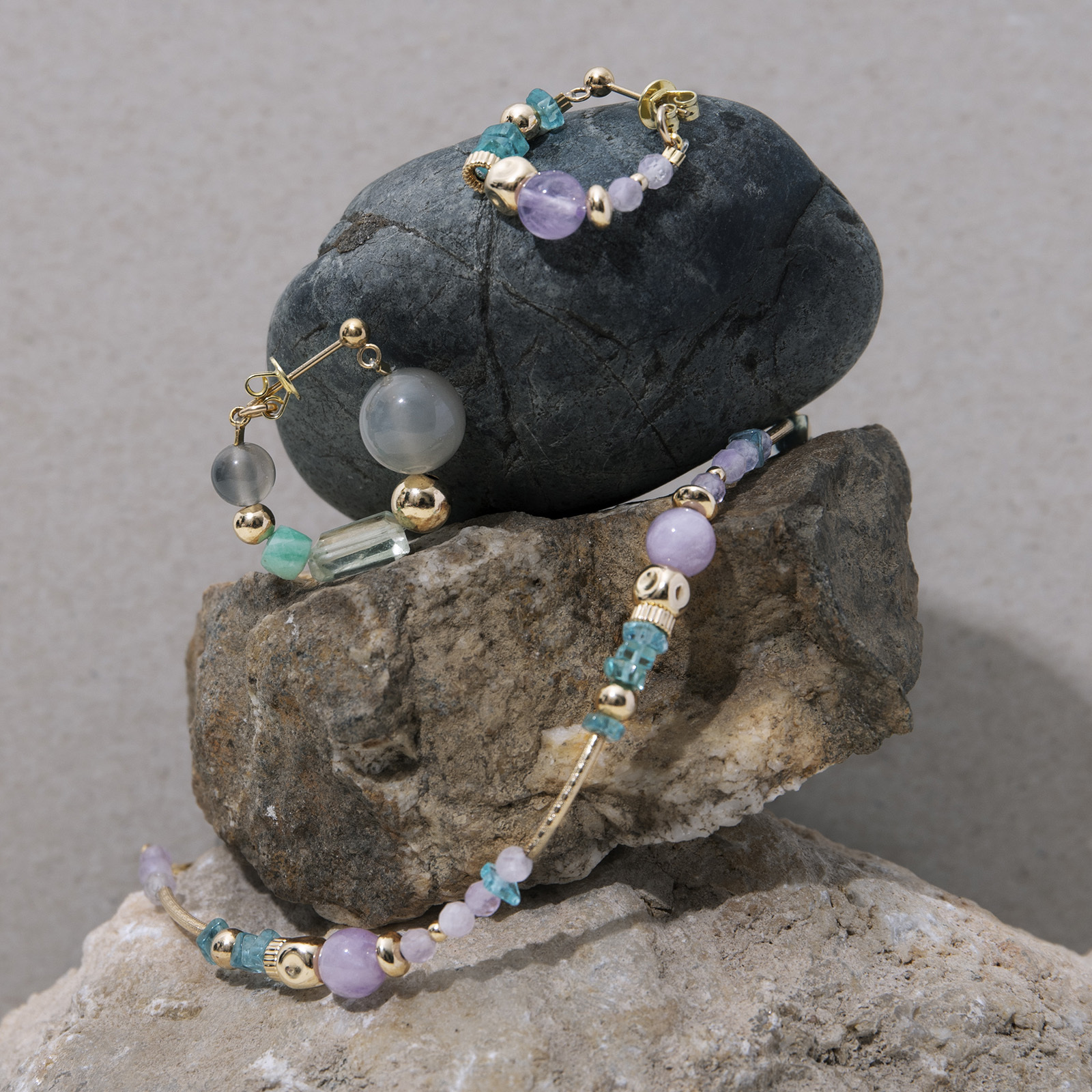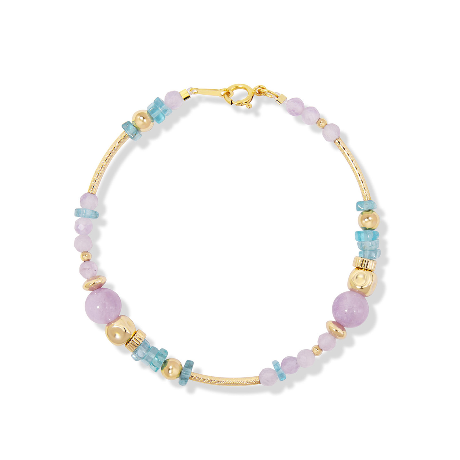 The warm luster of 14K gold-filled surrounds the wrist, emanating a sense of calm and clarity.