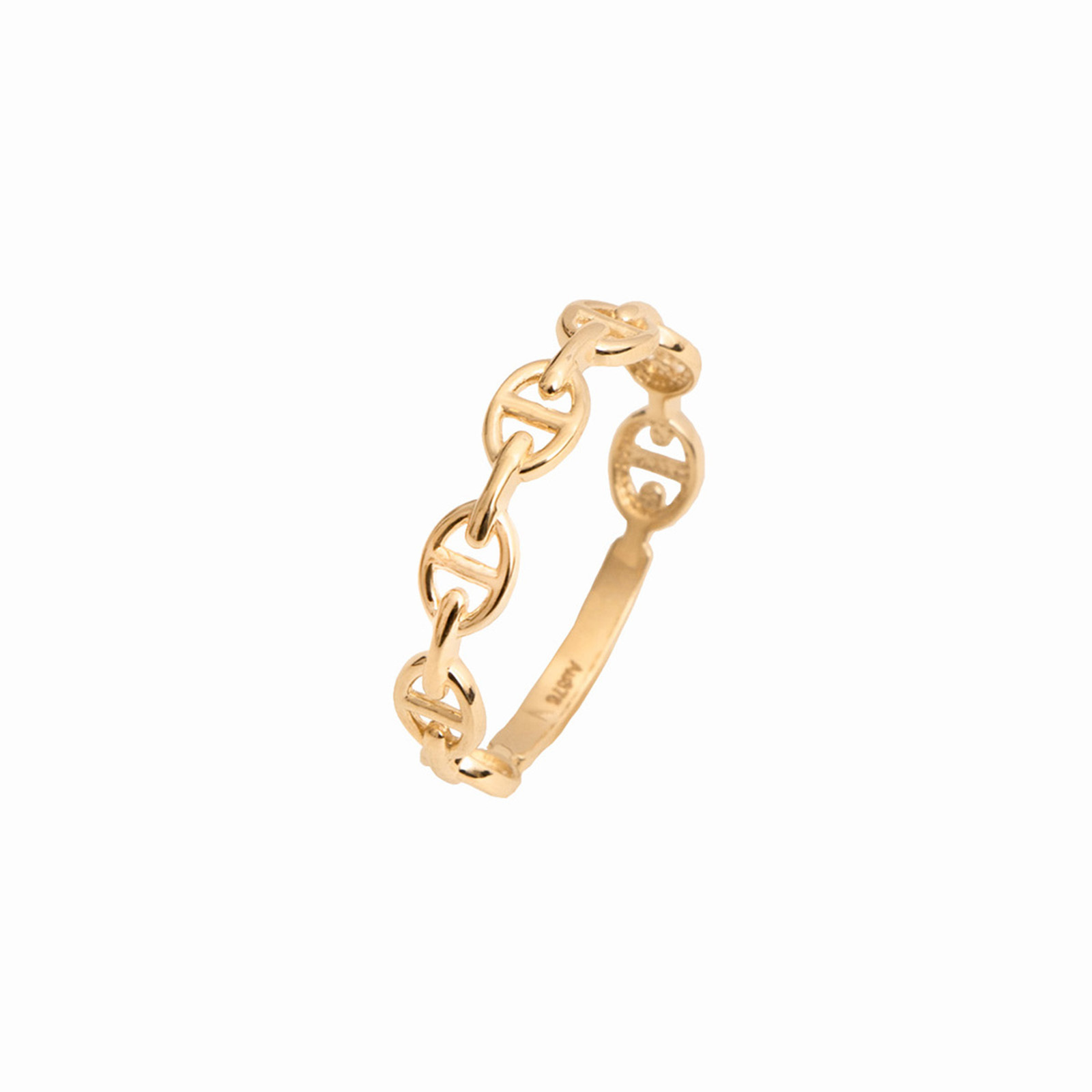 The classic horse-eye design features oval links that interlock, showcasing stylish, fluid lines.