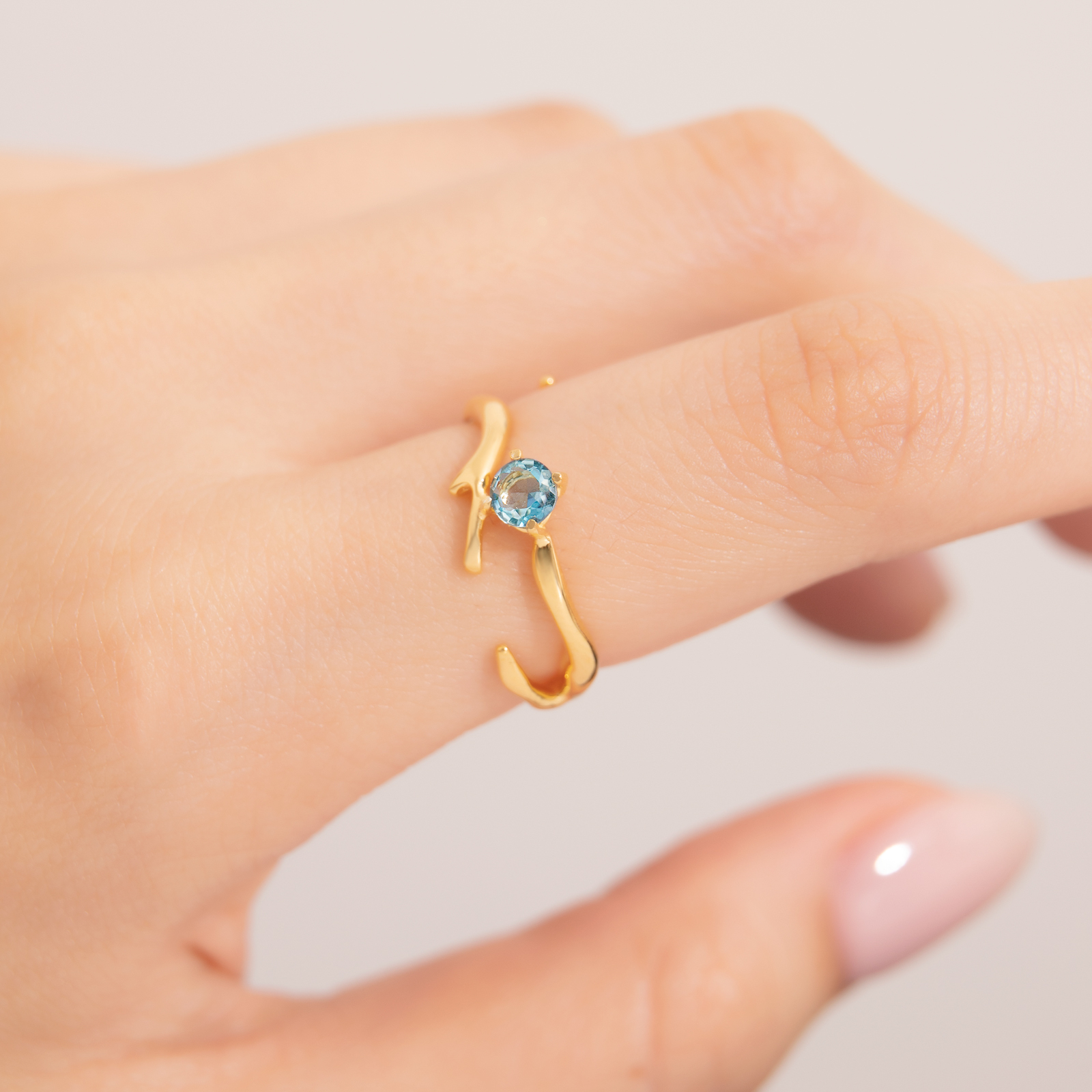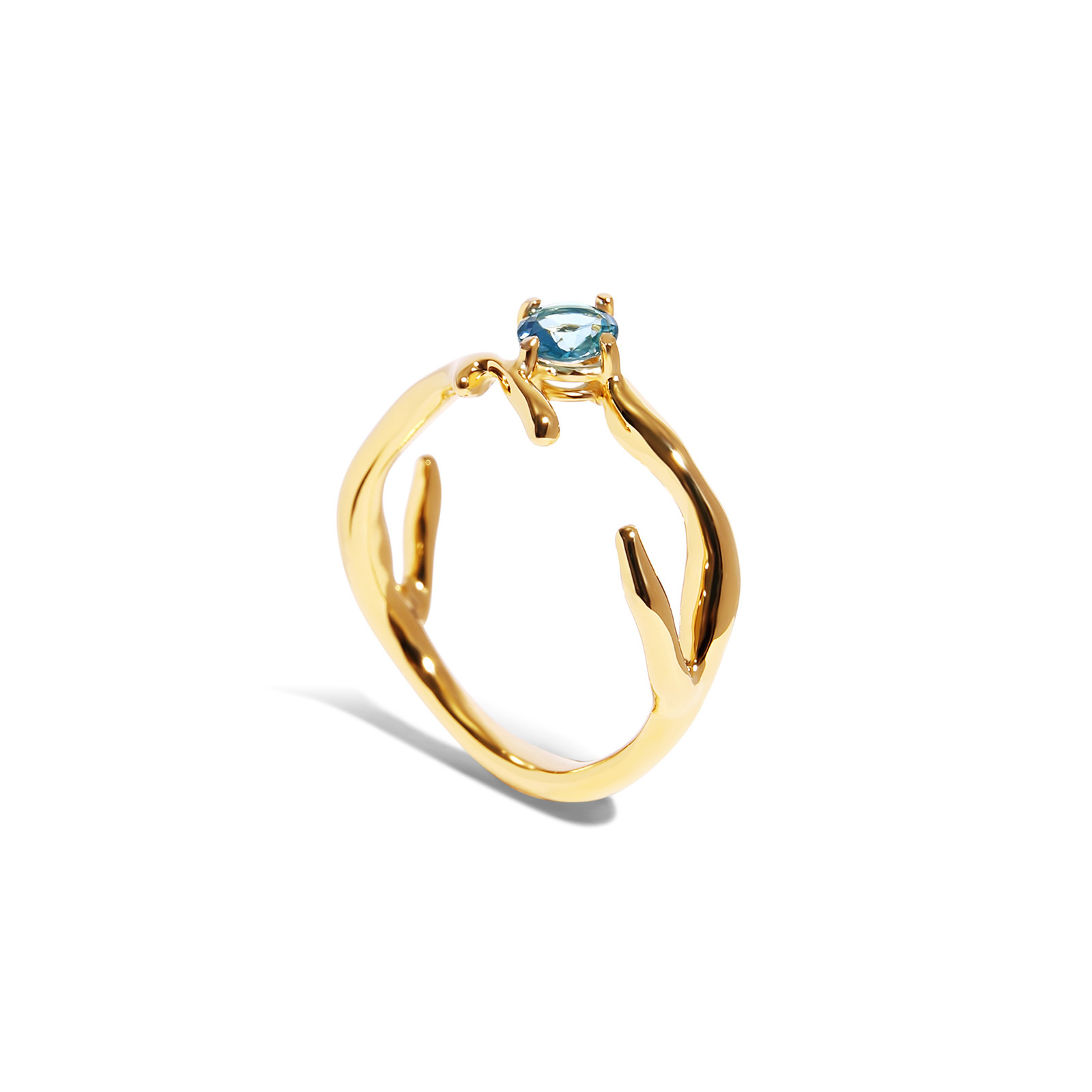 cradling a clear aquamarine at the center.