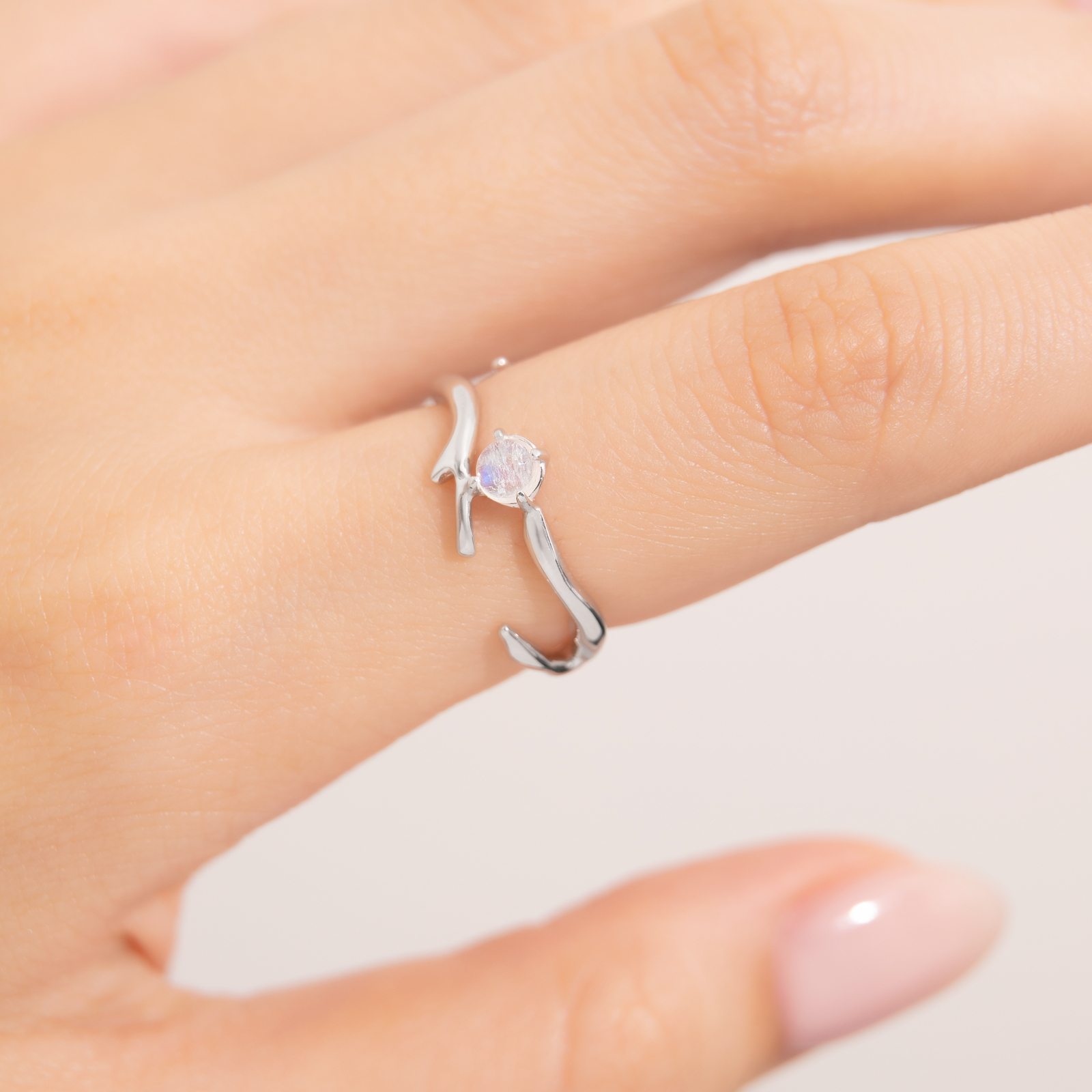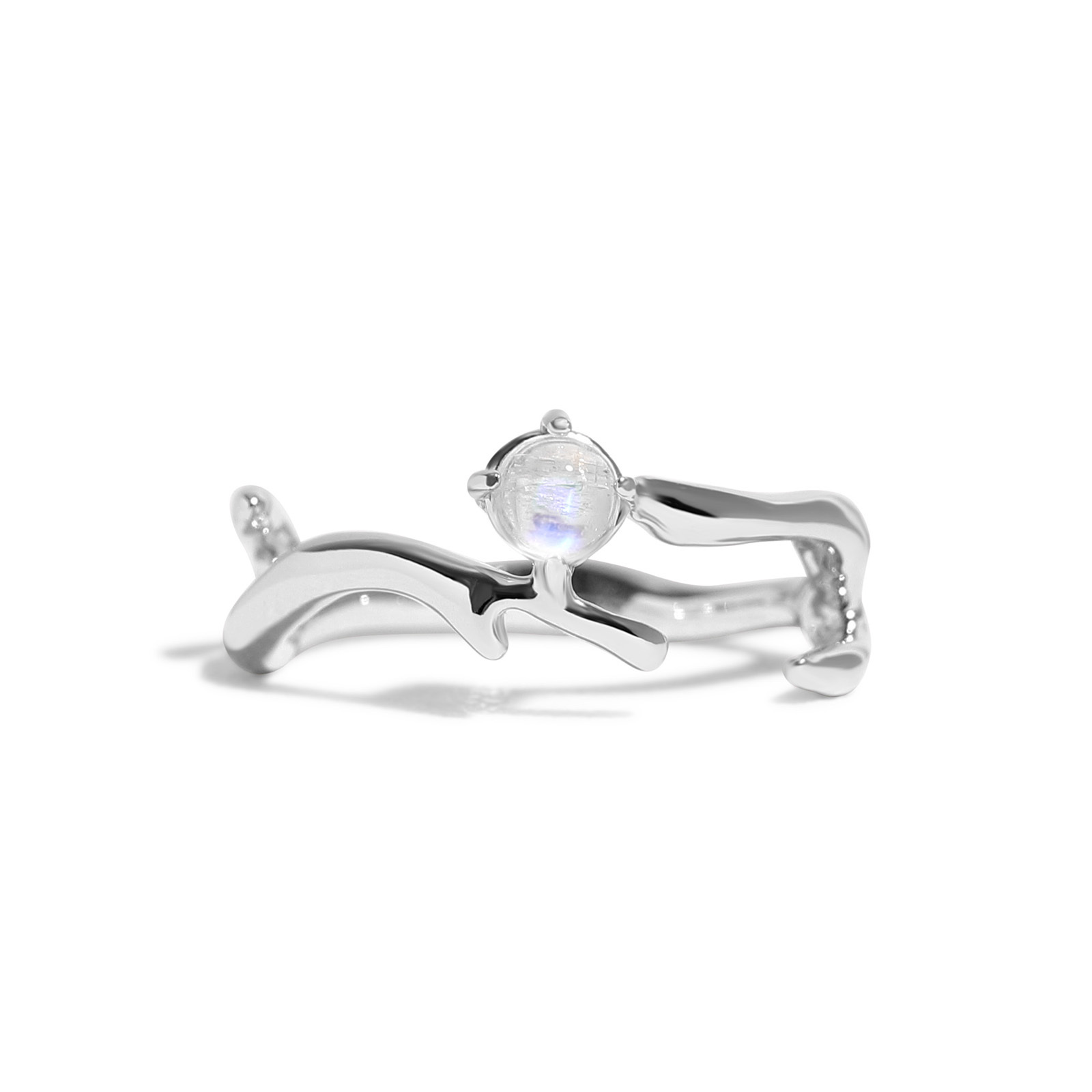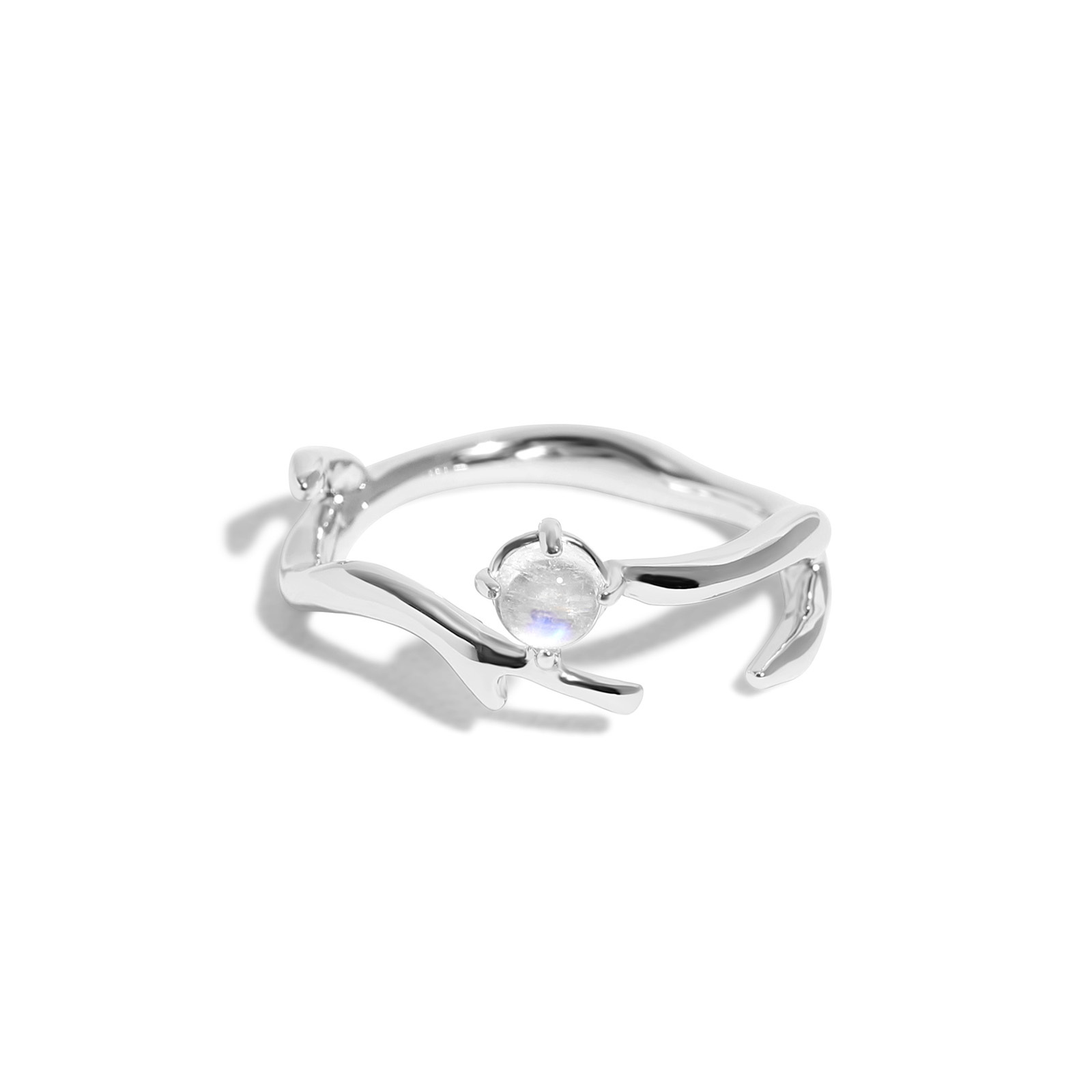 The natural moonstone set at the center symbolizes fated love and deep connection.