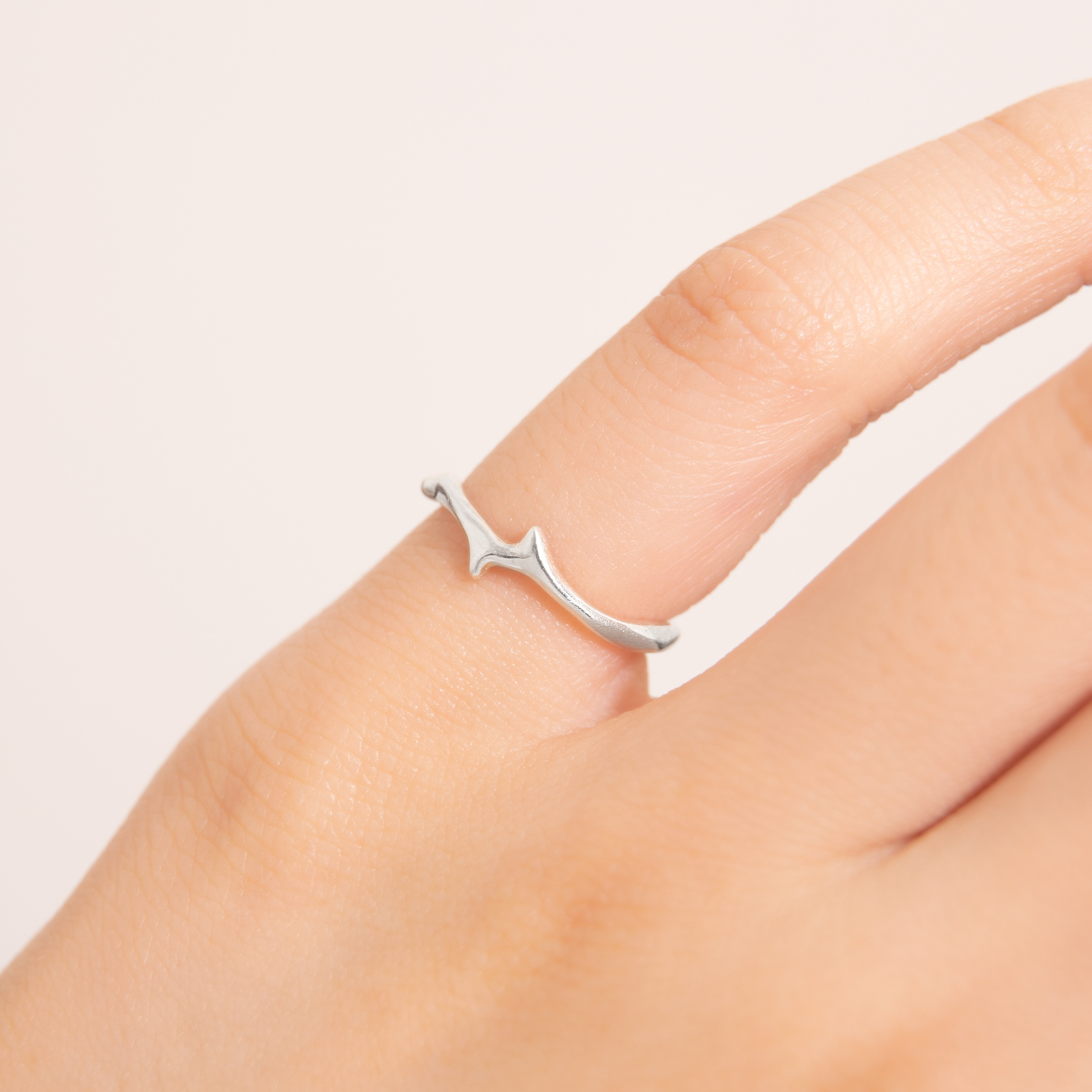 The band is gently curved and lightweight, perfectly accentuating the finger.