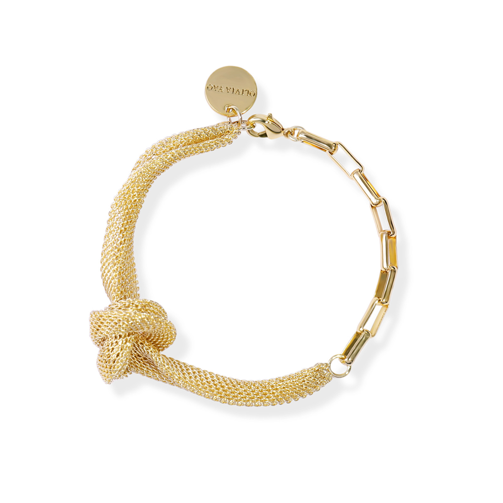 The knots on the metal chain symbolize freedom, and when combined with square links to create a bracelet, they embody both softness and strength.