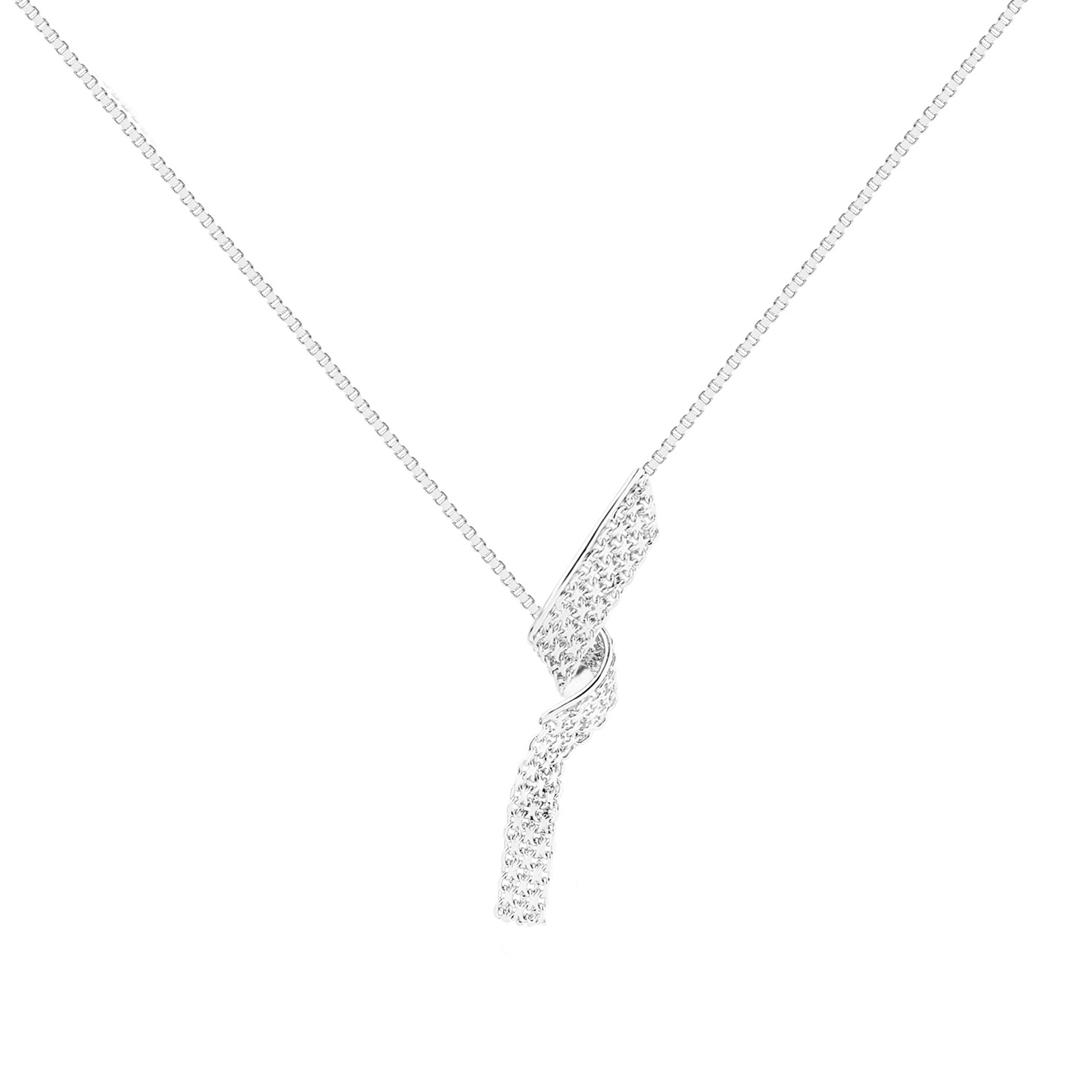 Inspired by brush strokes, a silver thread guides the pure silver ribbon, forming a curved S-shape that hangs elegantly at the chest. The smooth, soft silver chain weaves through the ribbon, finishing with a delicate silver bead. The Y-shaped design allows for adjustable styling, enhancing the neckline.