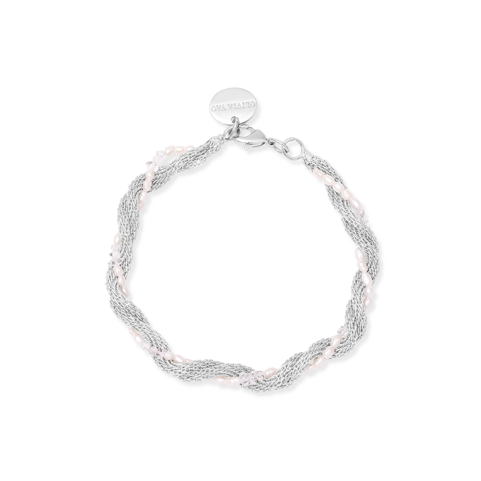 Through a blend of braiding and pearls, we craft delicate intersecting lines, giving the impression of gemstones and metal extending endlessly.