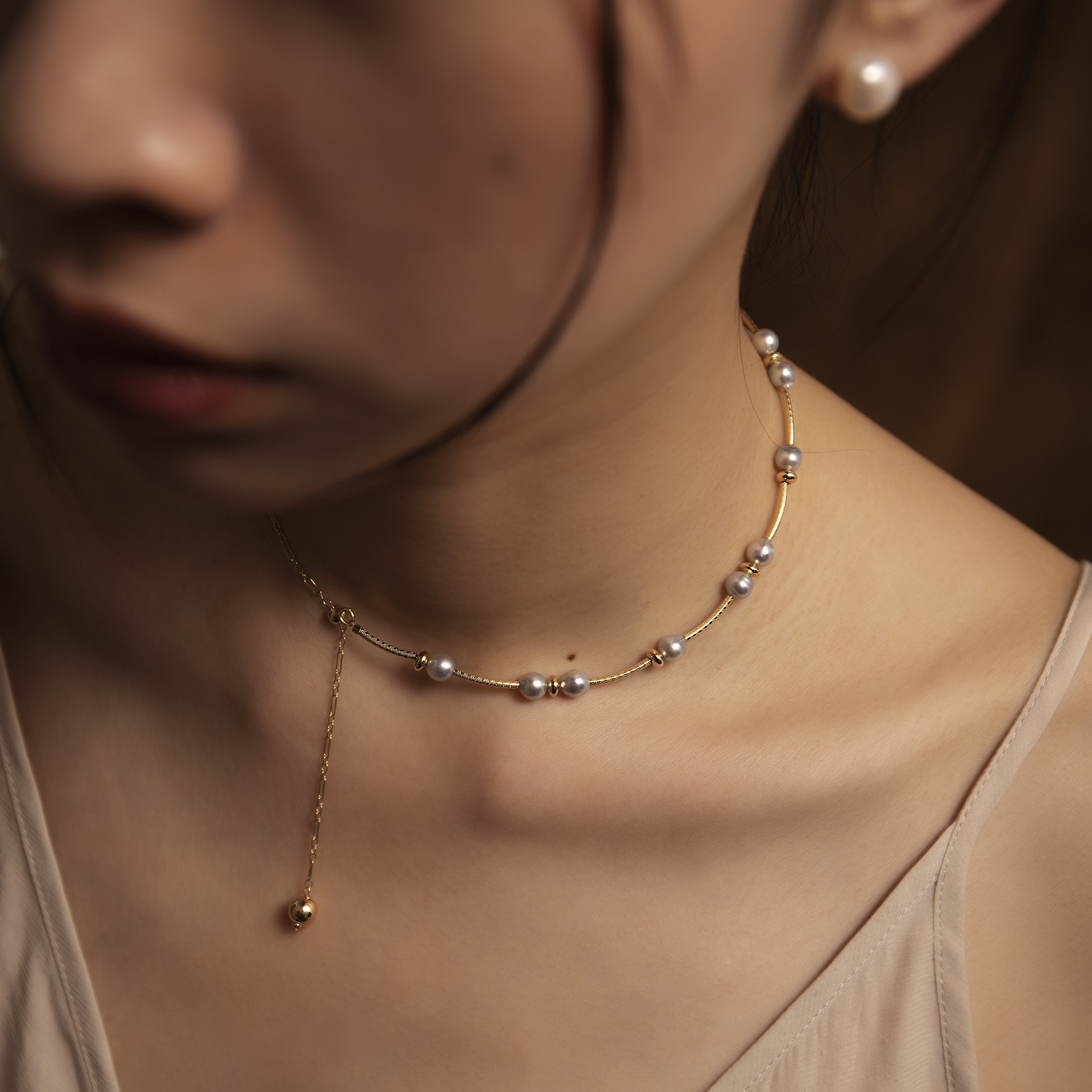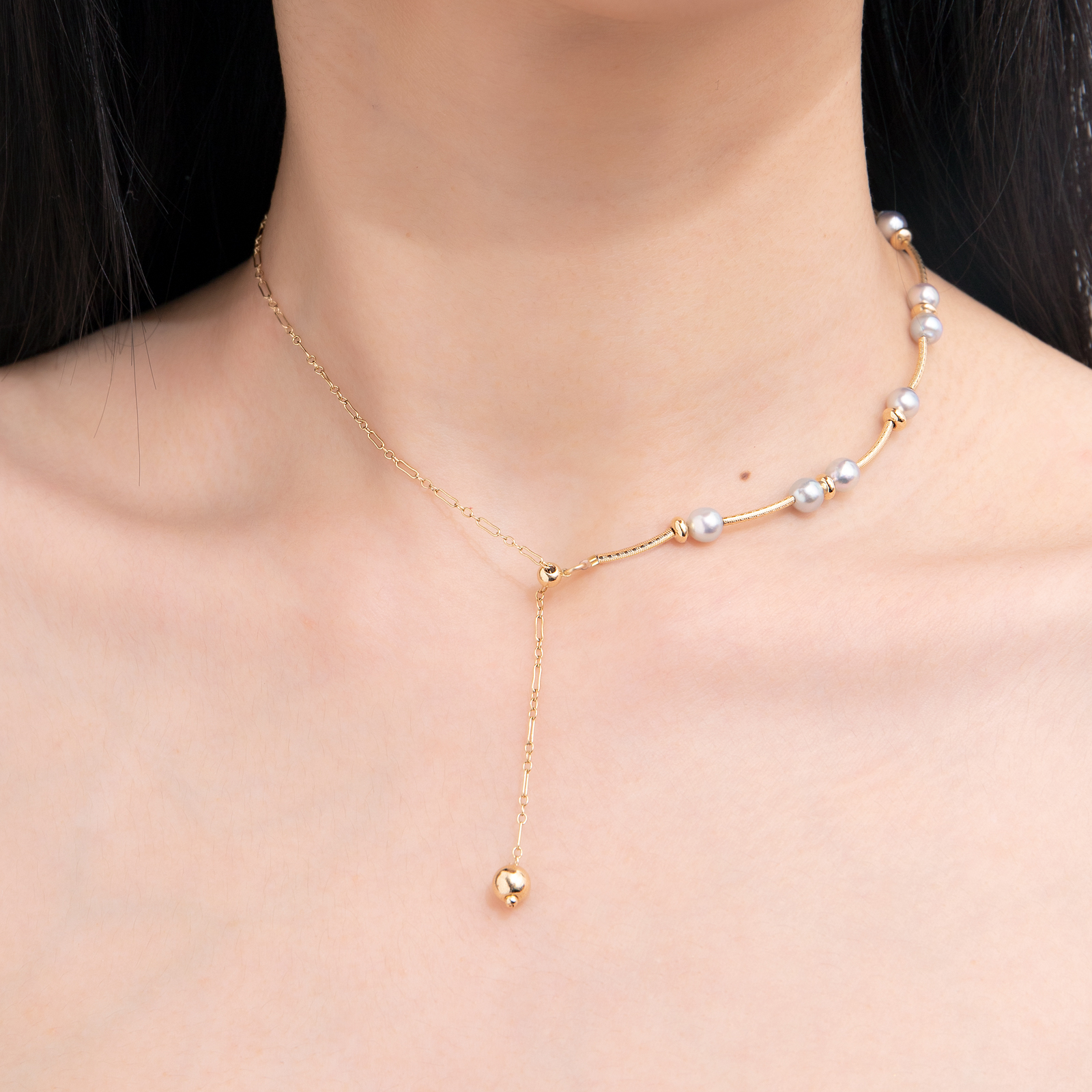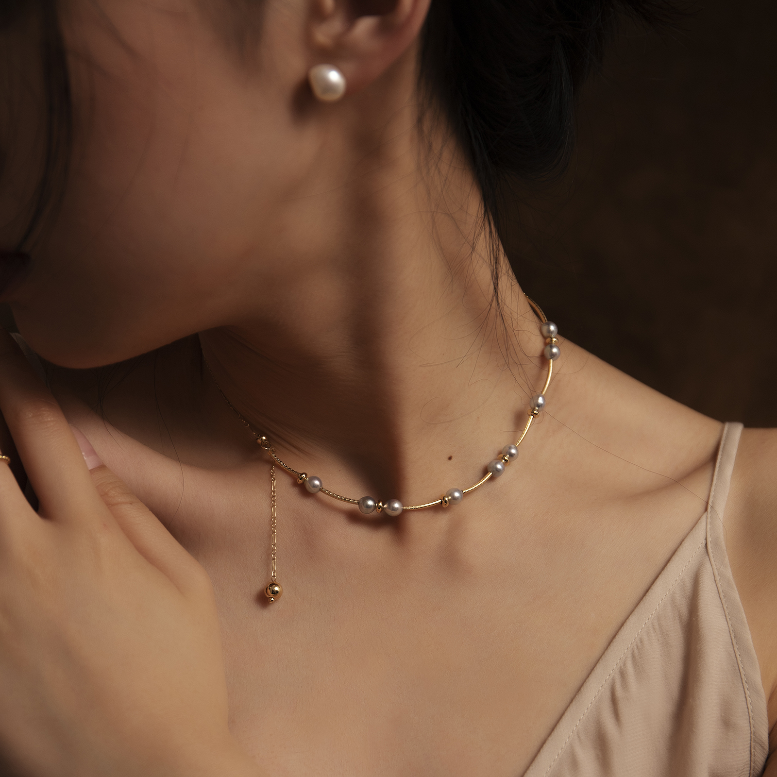 Tides | 14K合金灰霓真多麻Akoya珍珠項鍊
