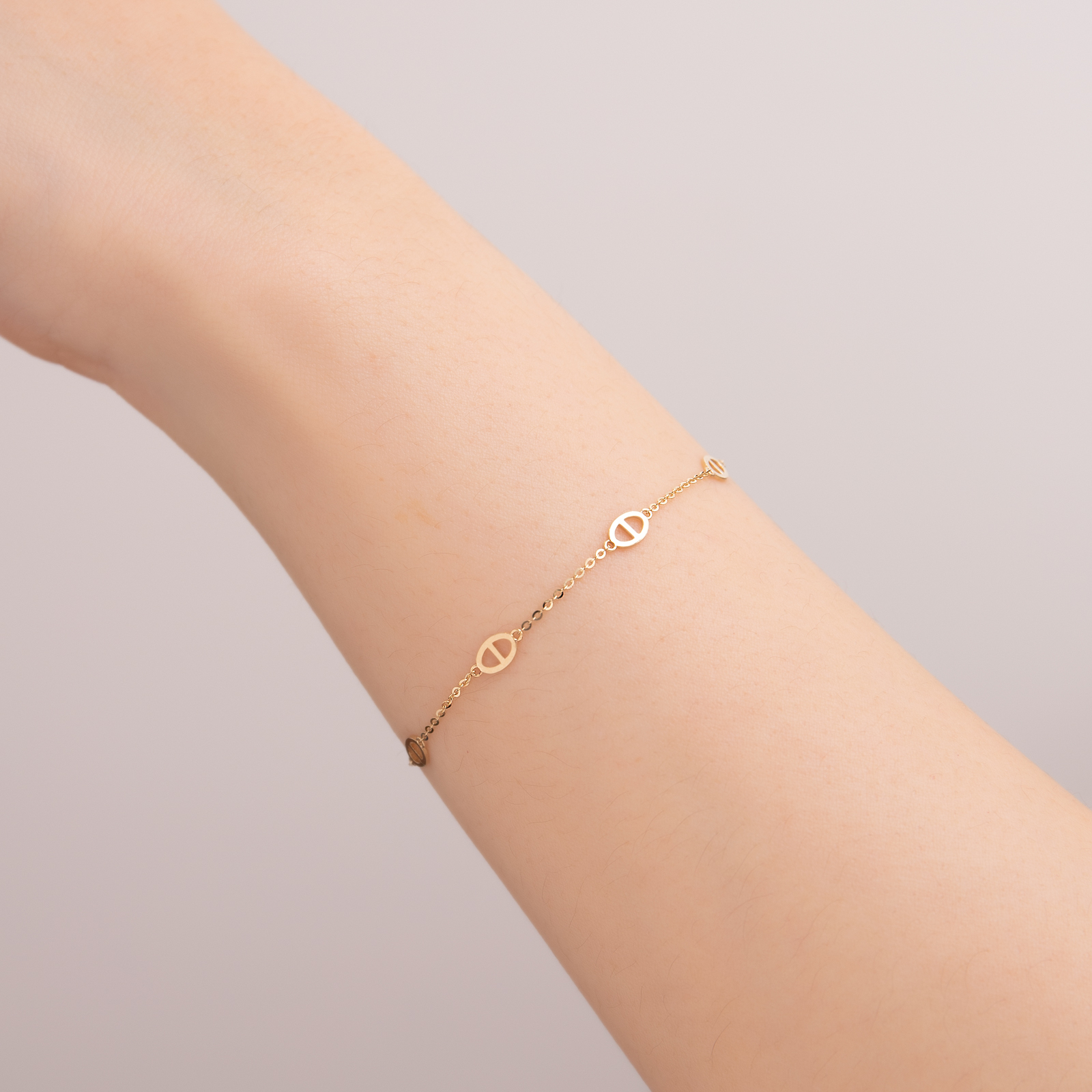 The 14K Gold Oval Link Bracelet features a classic and design-forward pig nose shape,
