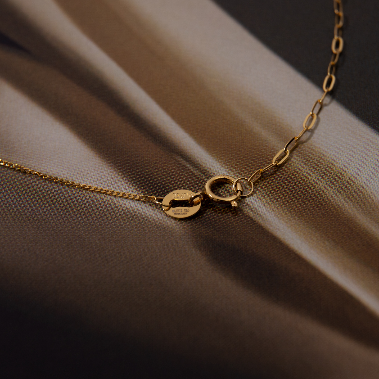 歐美感橢圓鏈結與寬版蛇鍊,雙鍊拼接的活潑設計,為平凡的生活增添穿戴的趣味性。
