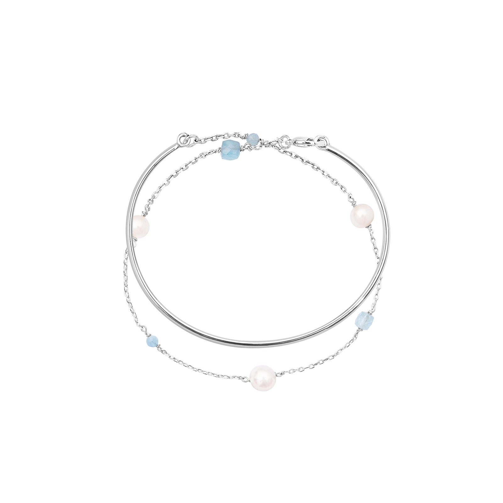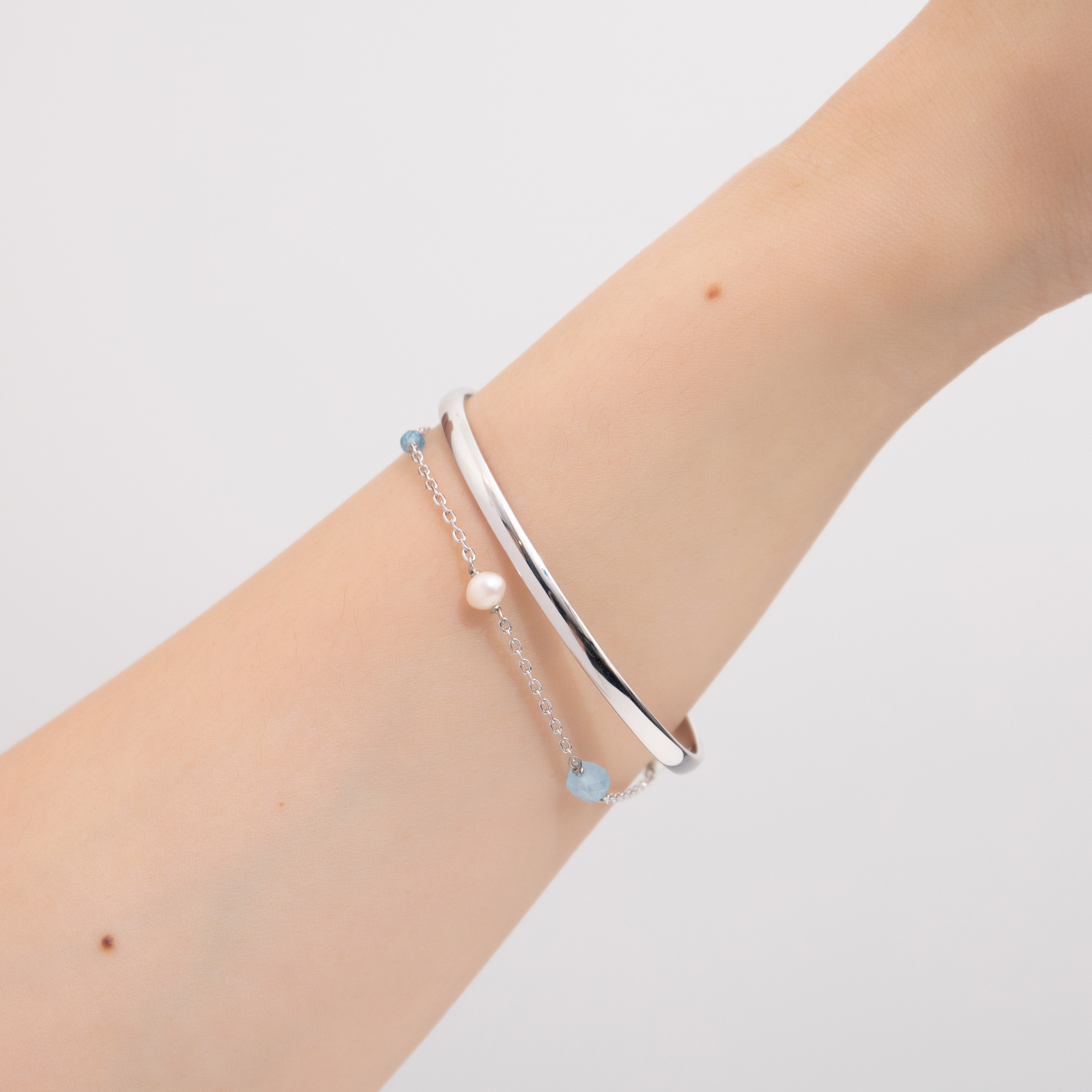 Iiris | 雙生海藍寶鍍白K手鏈(可刻字)