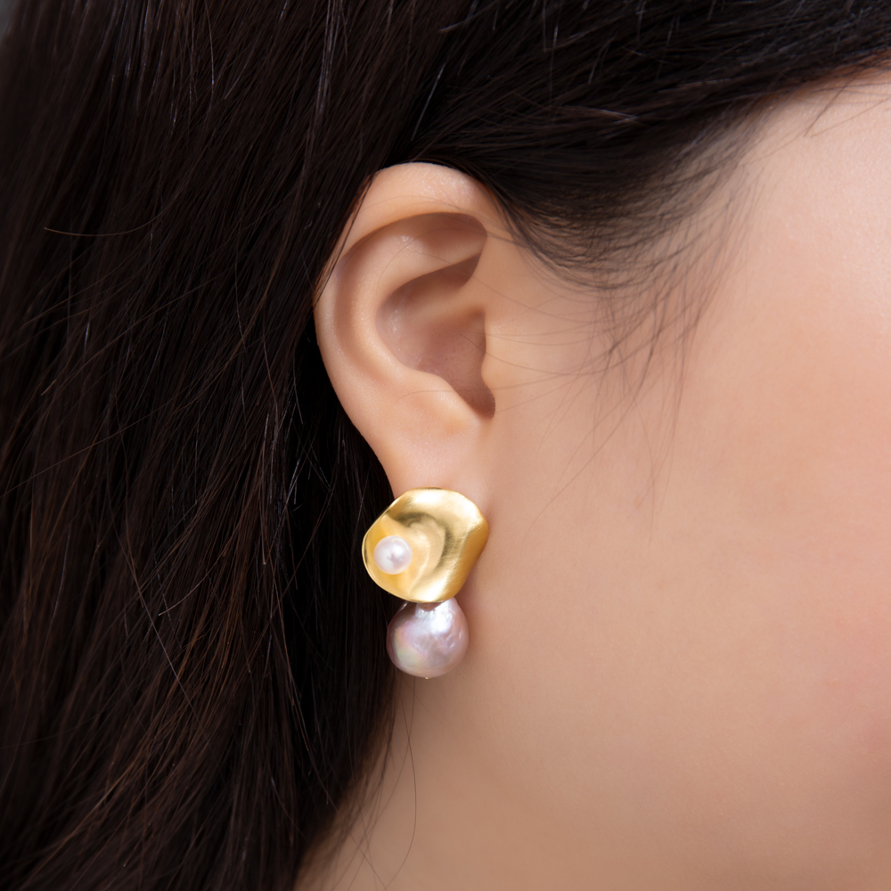 Asteria|星夜女神玫瑰珍珠耳環(可改夾式)