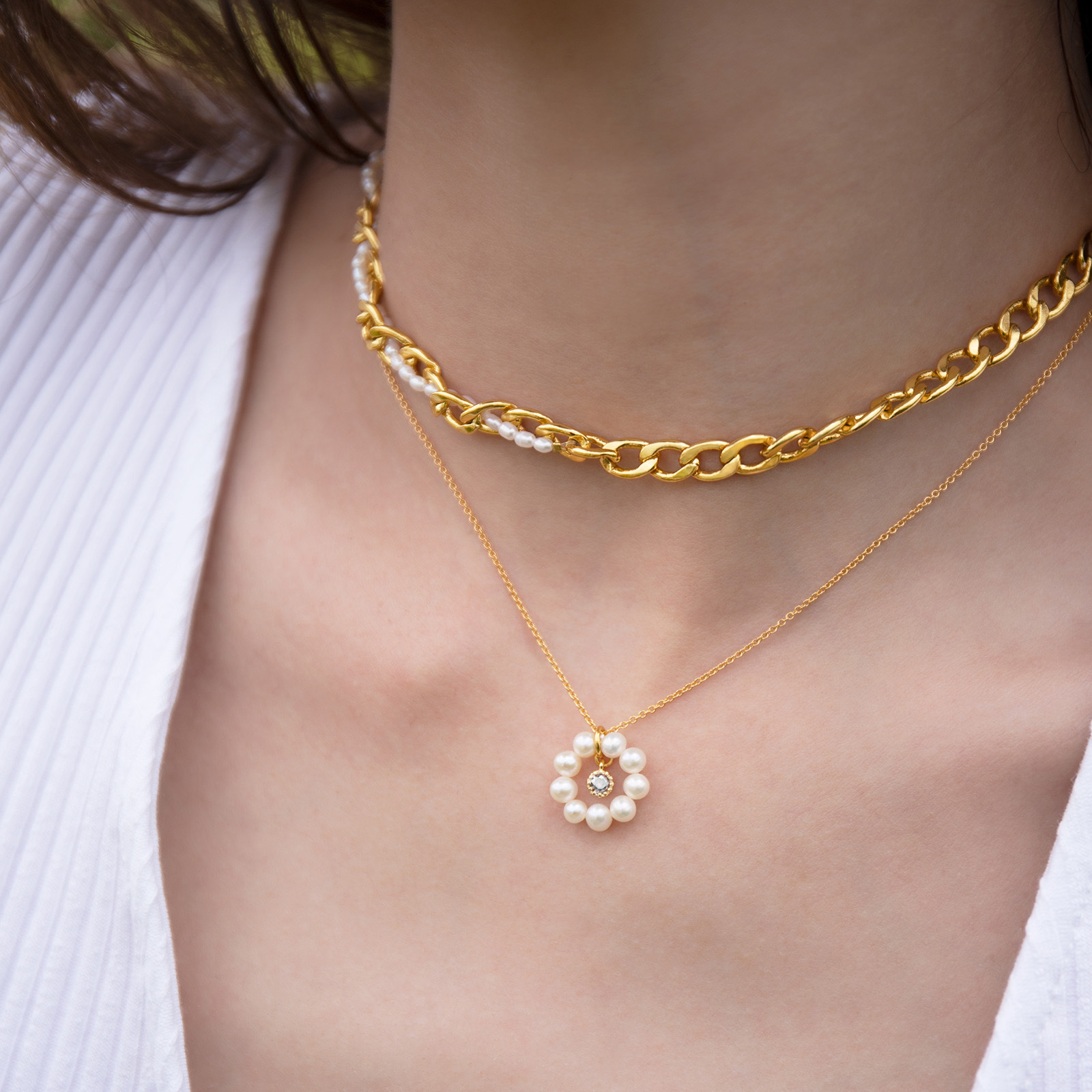 Bonheur|4月幸運色生日石鋯石珍珠項鍊