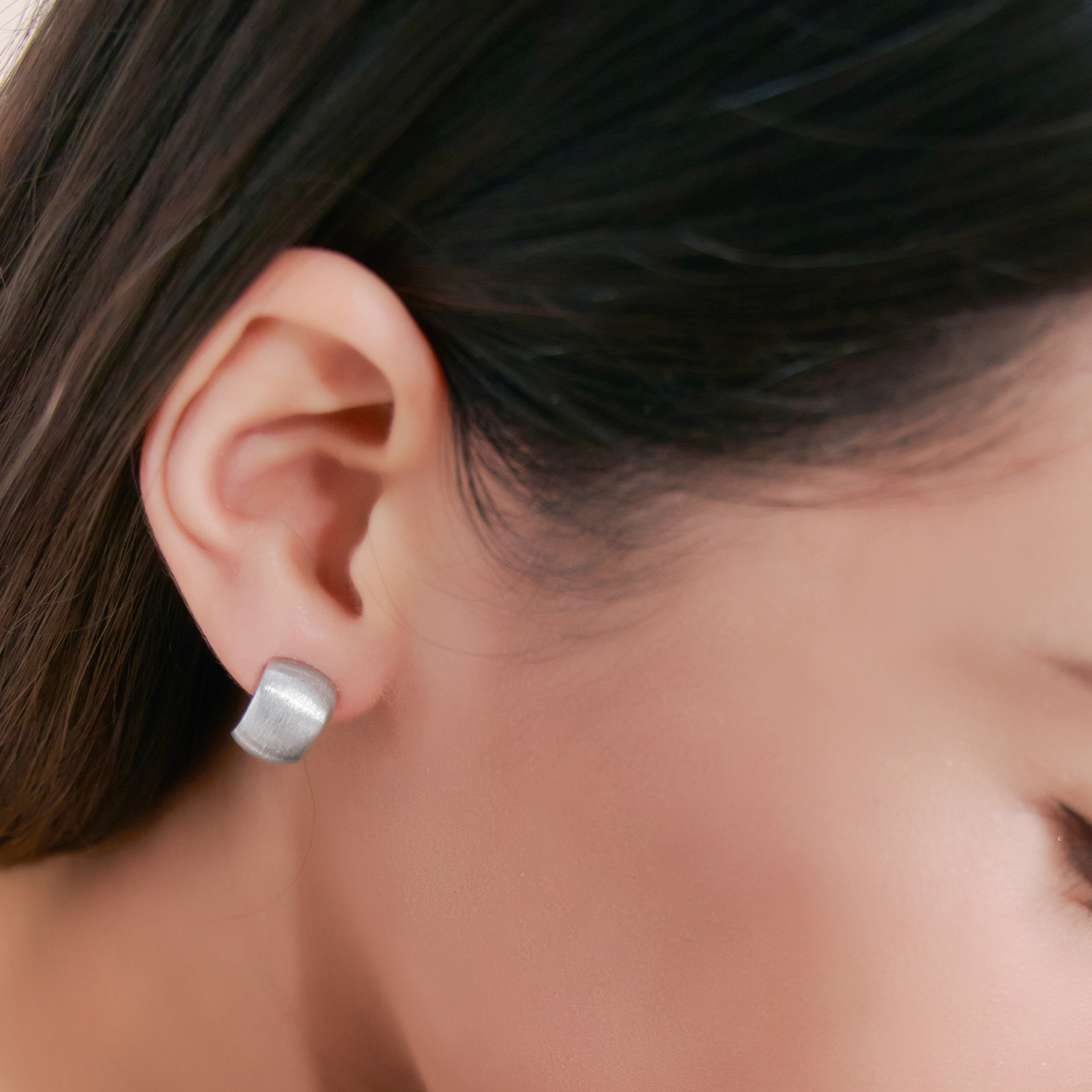 Brushed Sterling Silver Half-Hoop Earrings