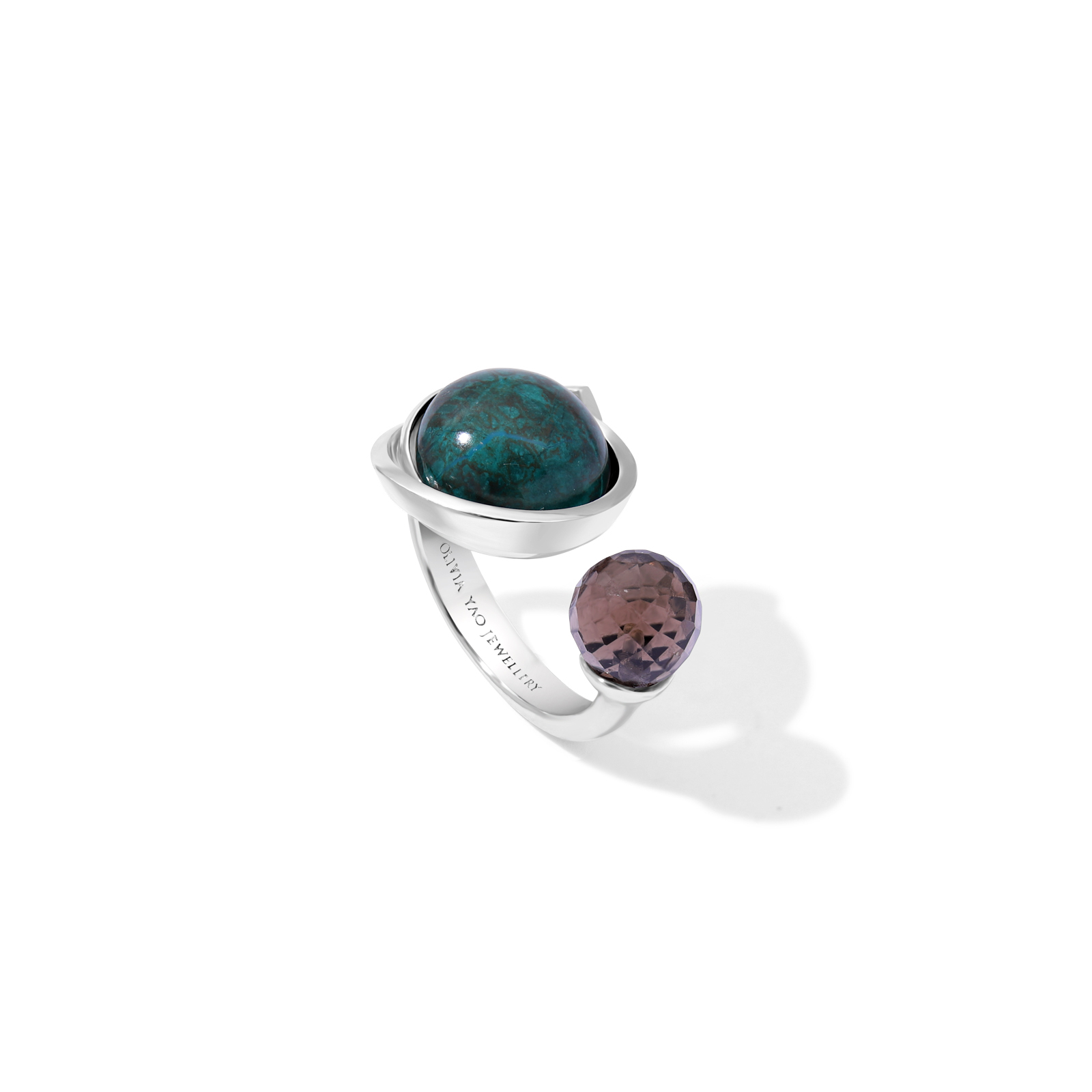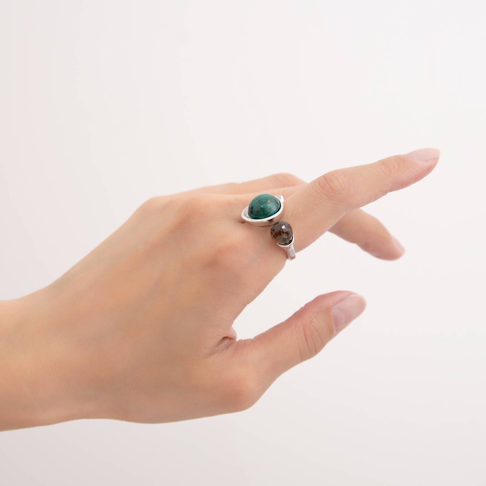 COSMOS|安定・藍銅礦茶水晶開口戒