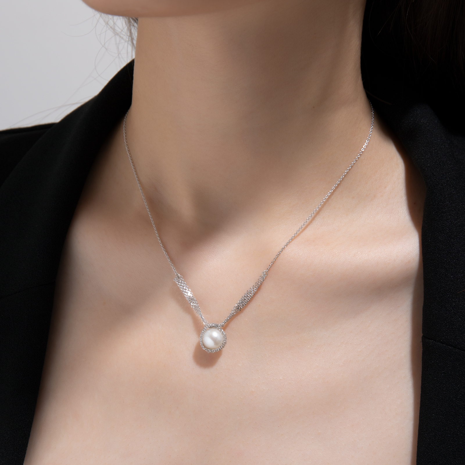 Quiet | Embrace Circle Sterling Silver Pearl Necklace