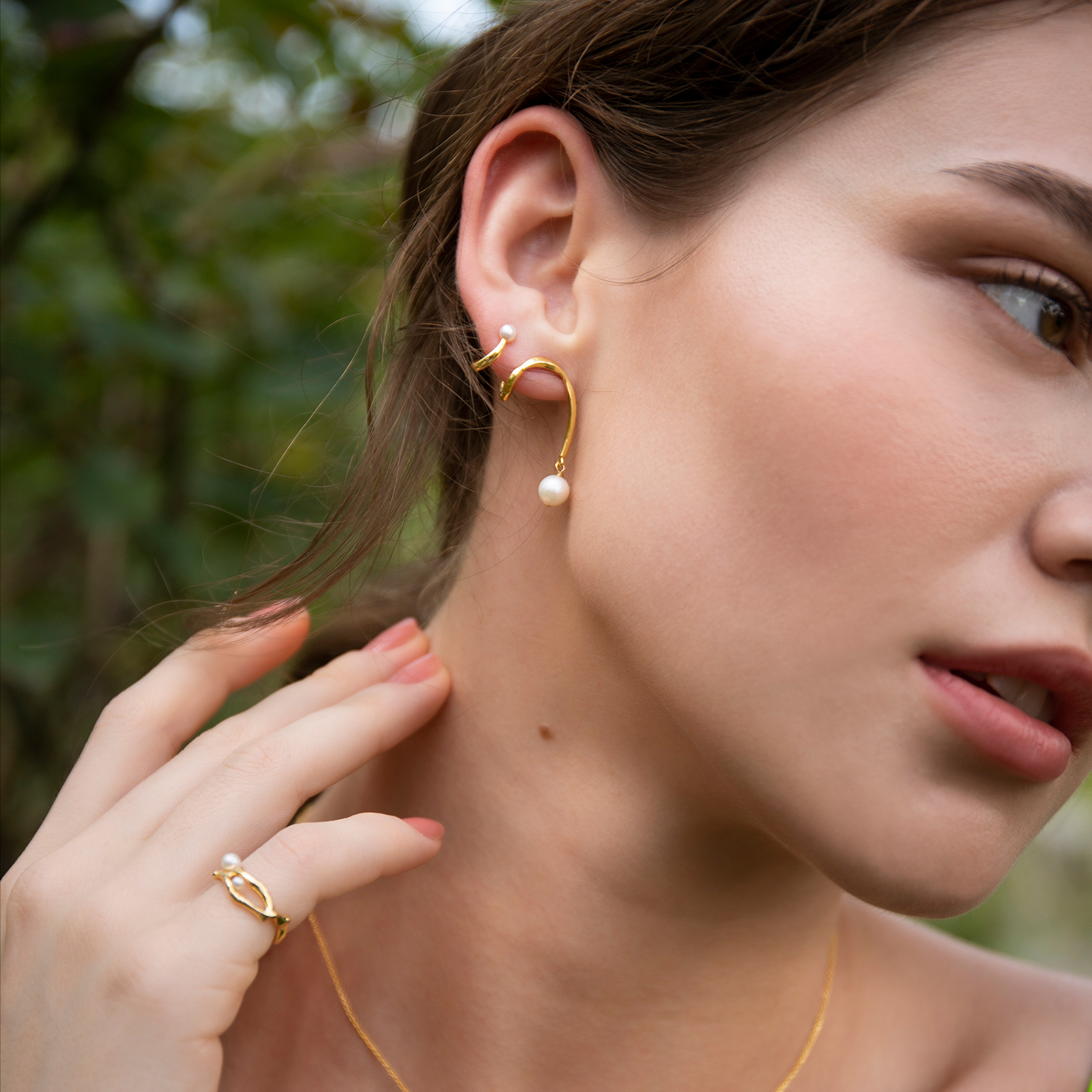 Fern | 線蕨珍珠鍍金耳環(單支)