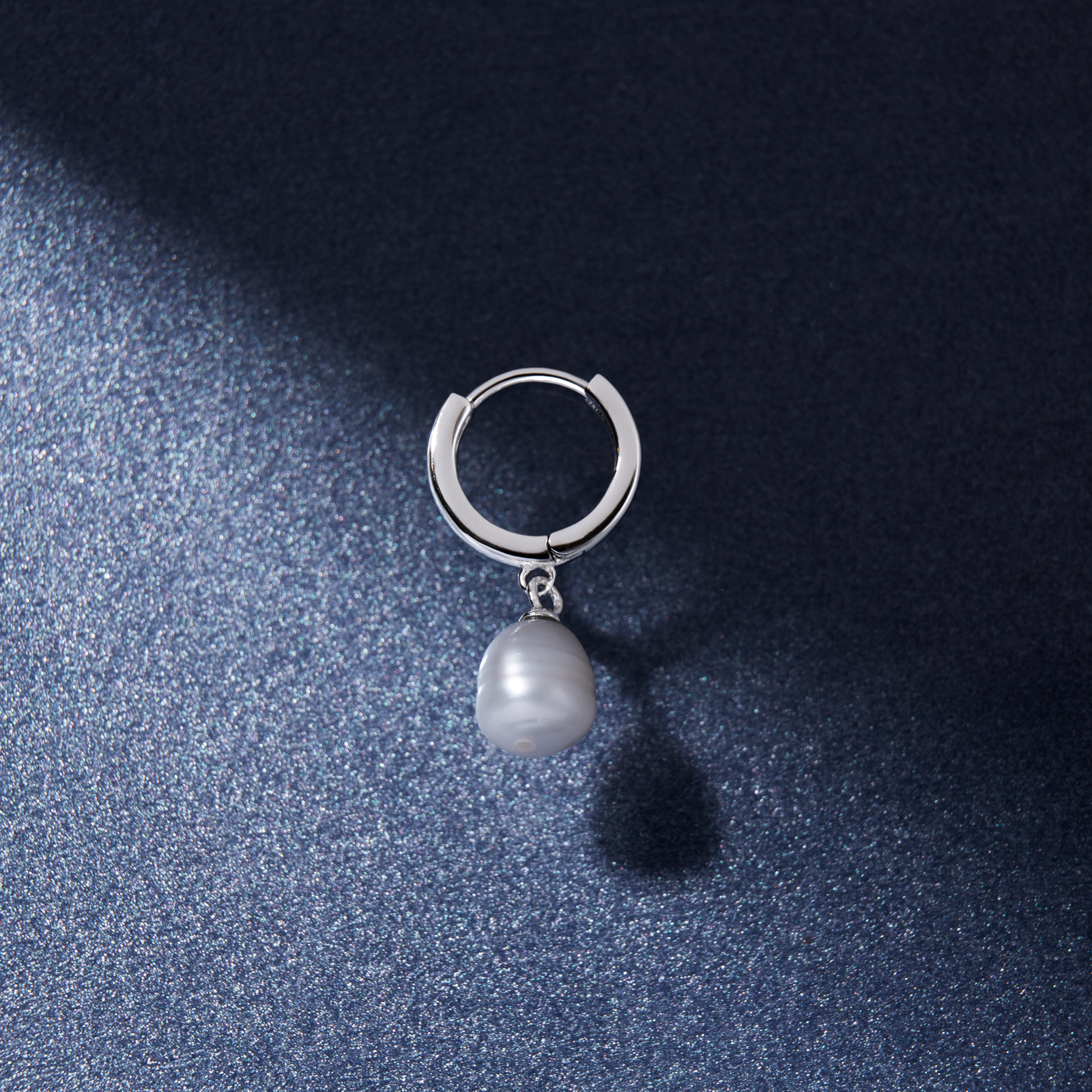 Ouro|垂墜珍珠銀色圈圈耳環(單支)