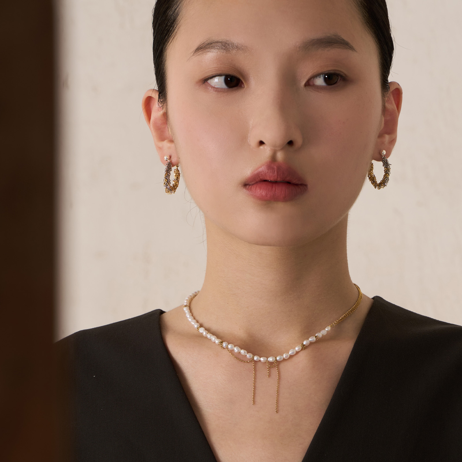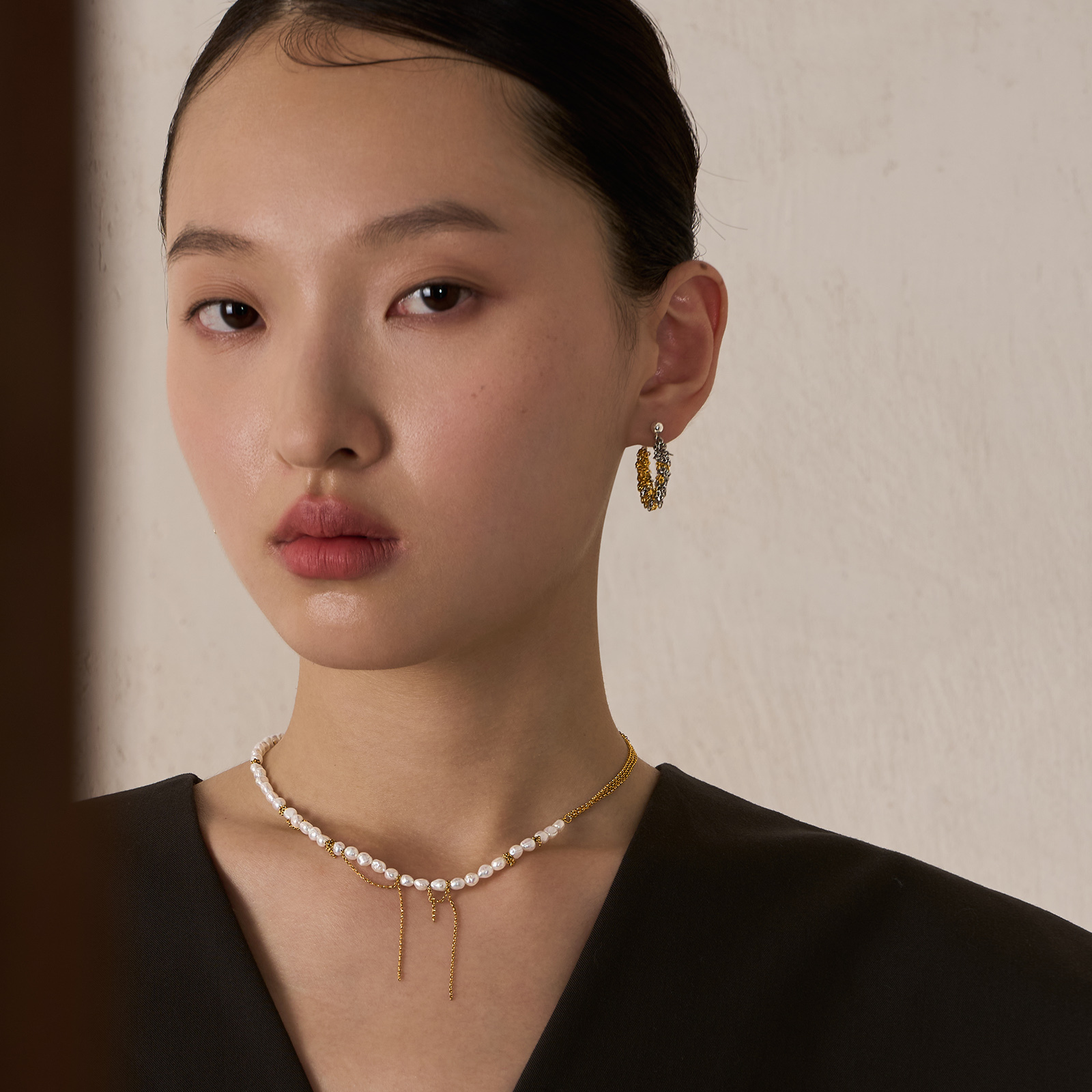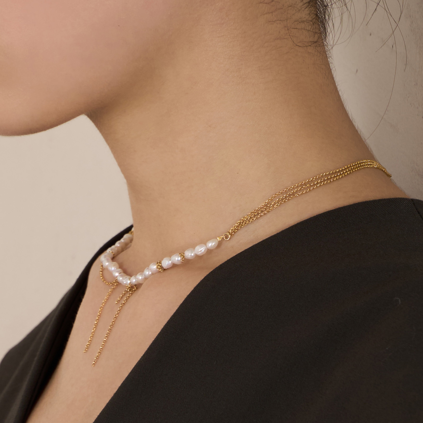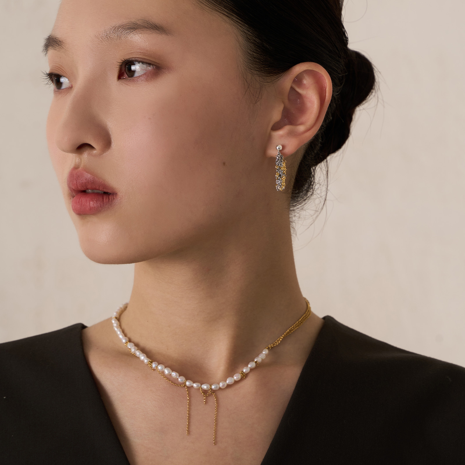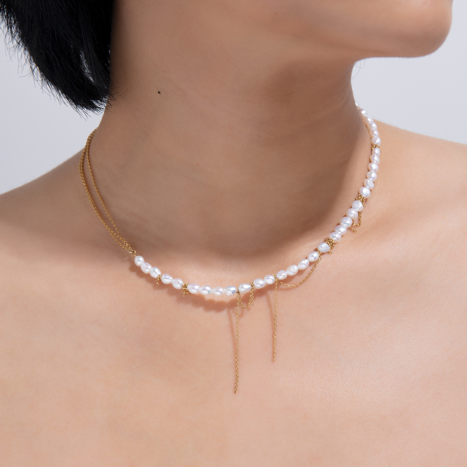 Tassels | Golden Tassel Streamlined Pearl Magnetic Necklace