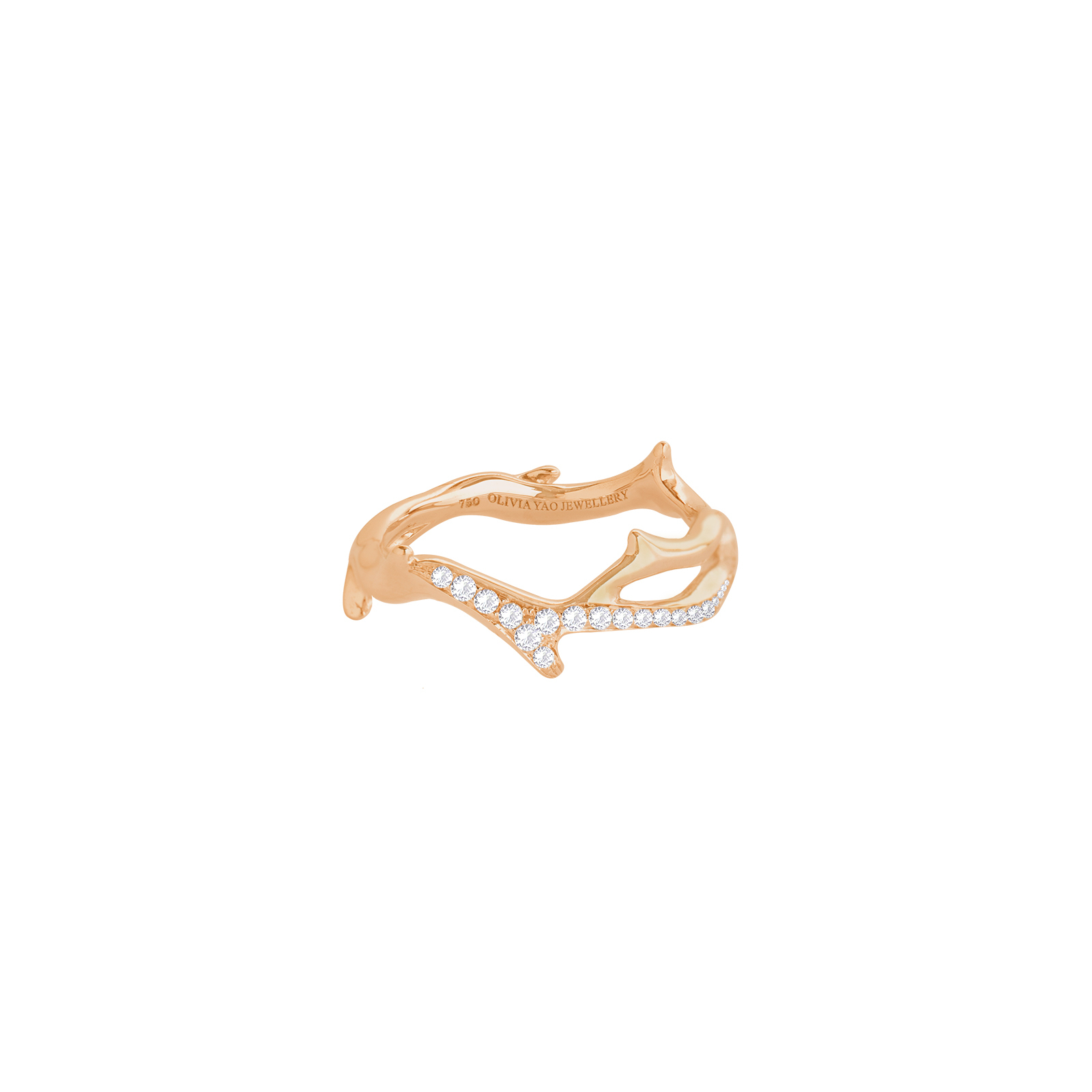 Luxuriant|單鑽樹枝&耀眼排鑽18K玫瑰金套戒