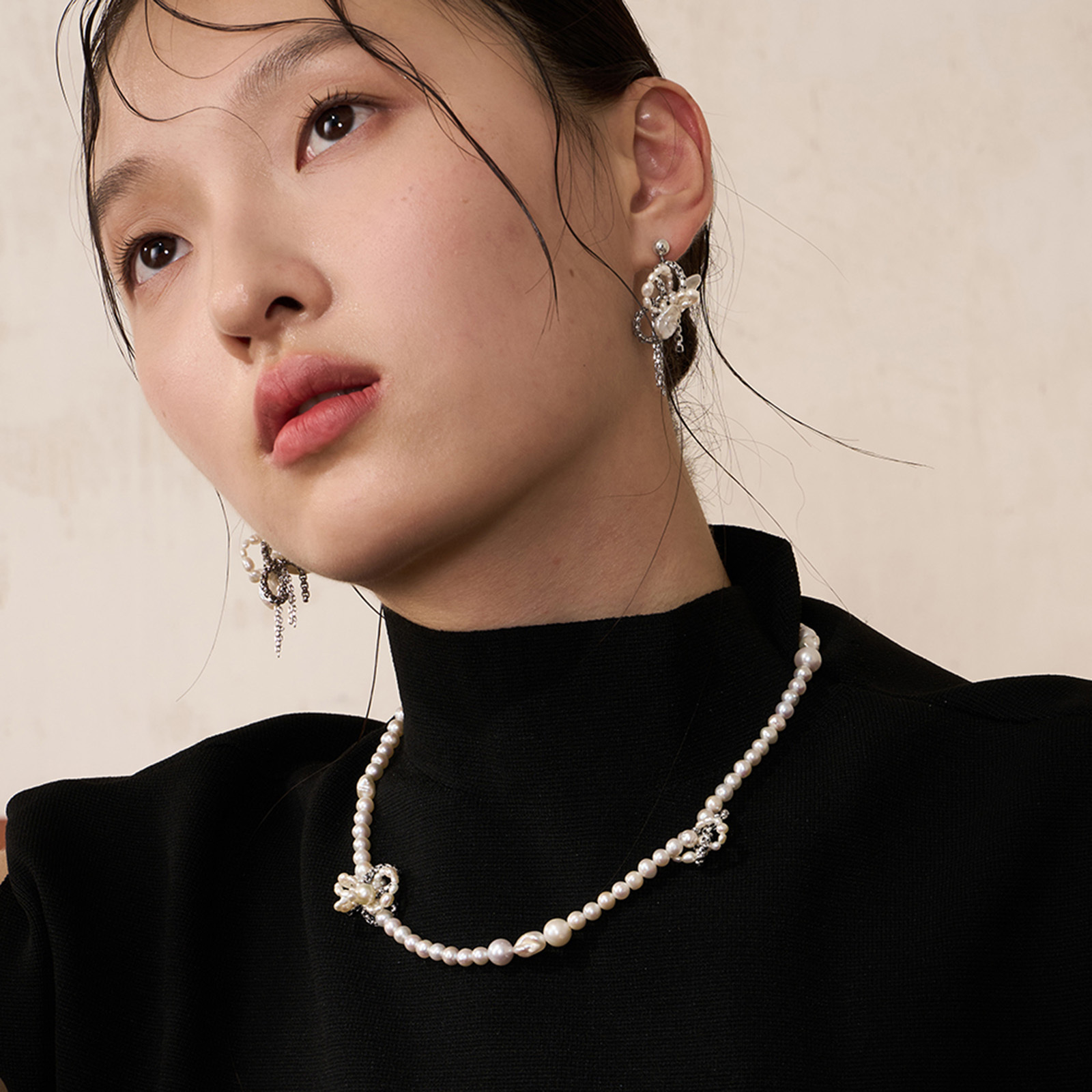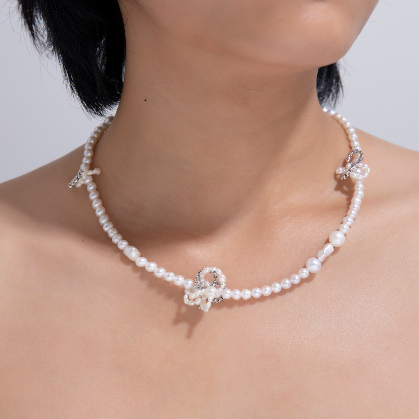 Soft | Mini Bow Baroque Pearl Magnetic Necklace