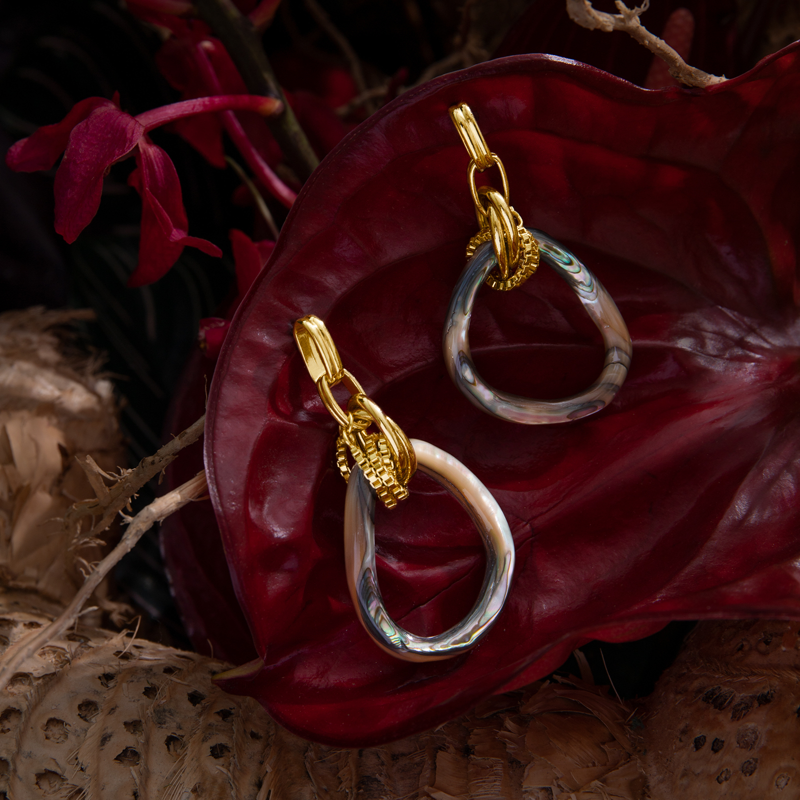 Ripple|女神珍珠母貝垂墜耳環(可改夾式)