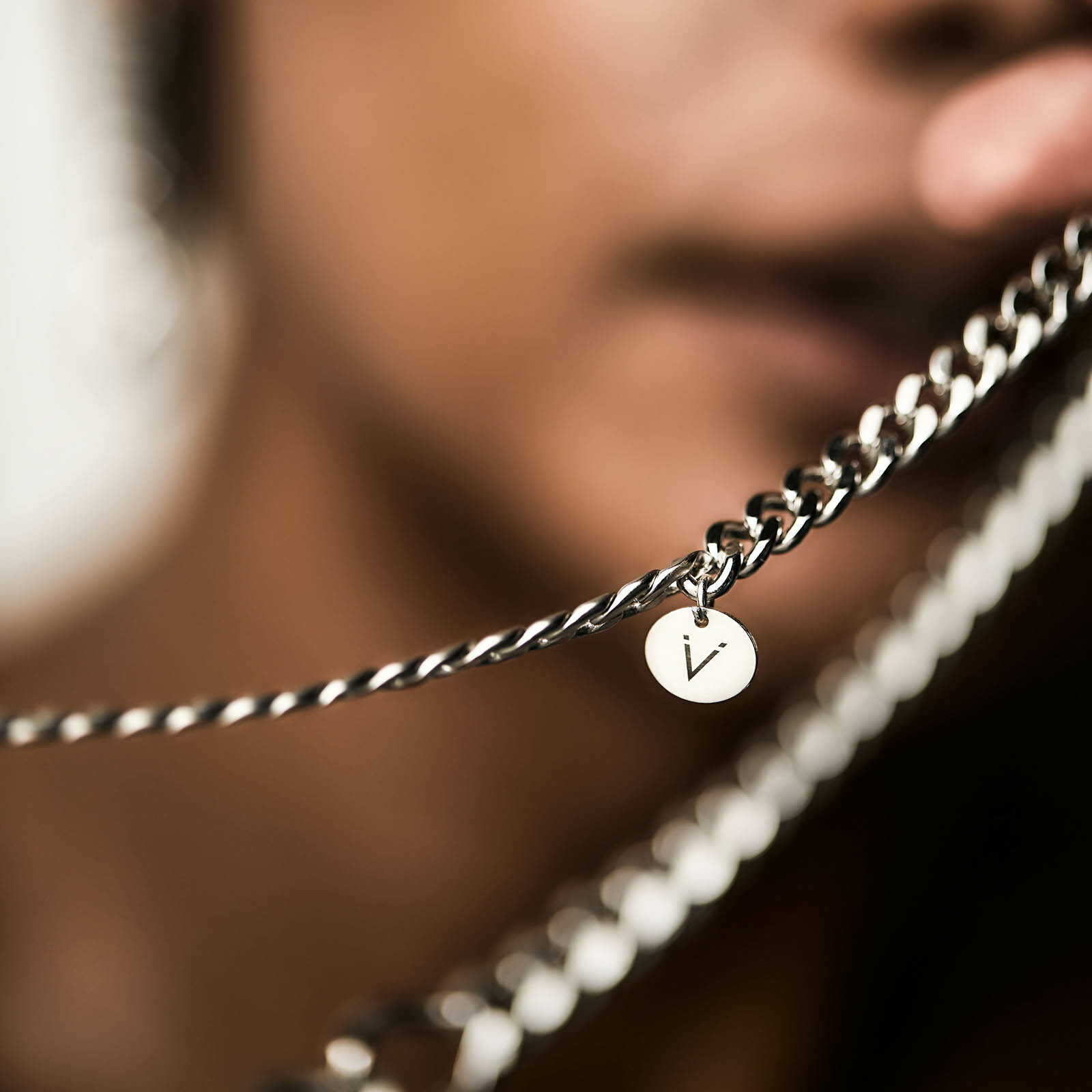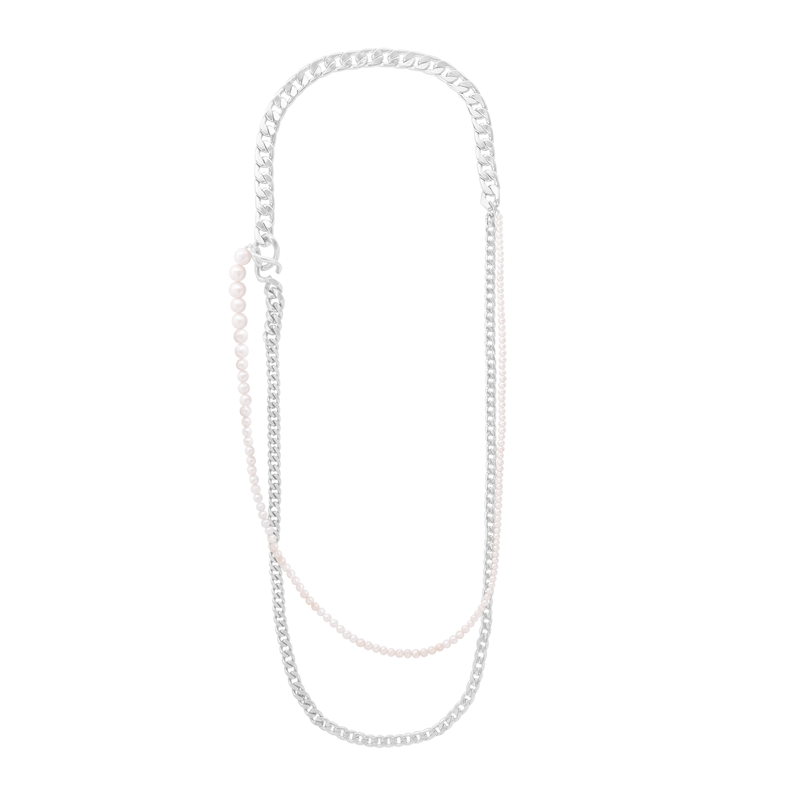 Ouro|銀色珍珠多層鎖鏈長鍊