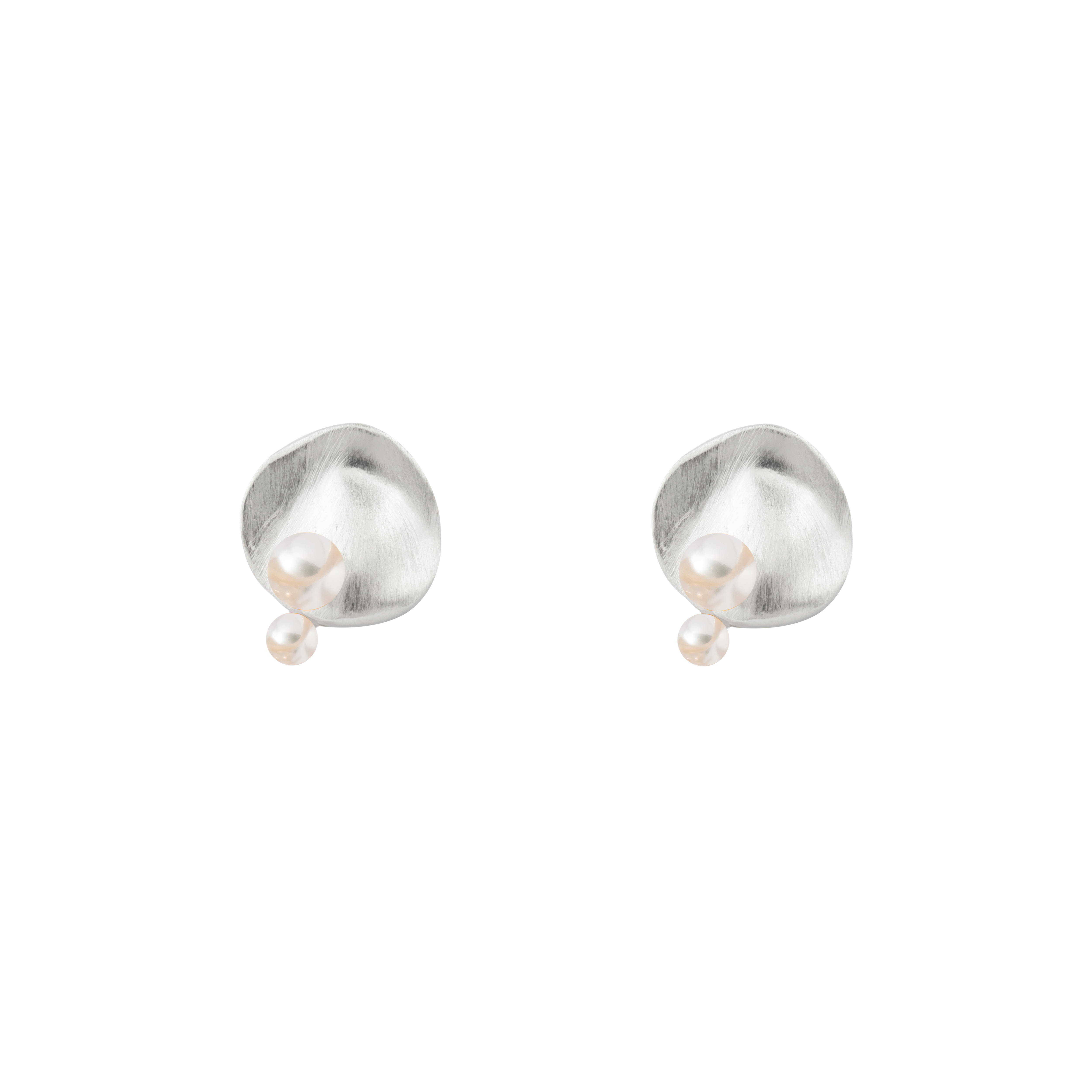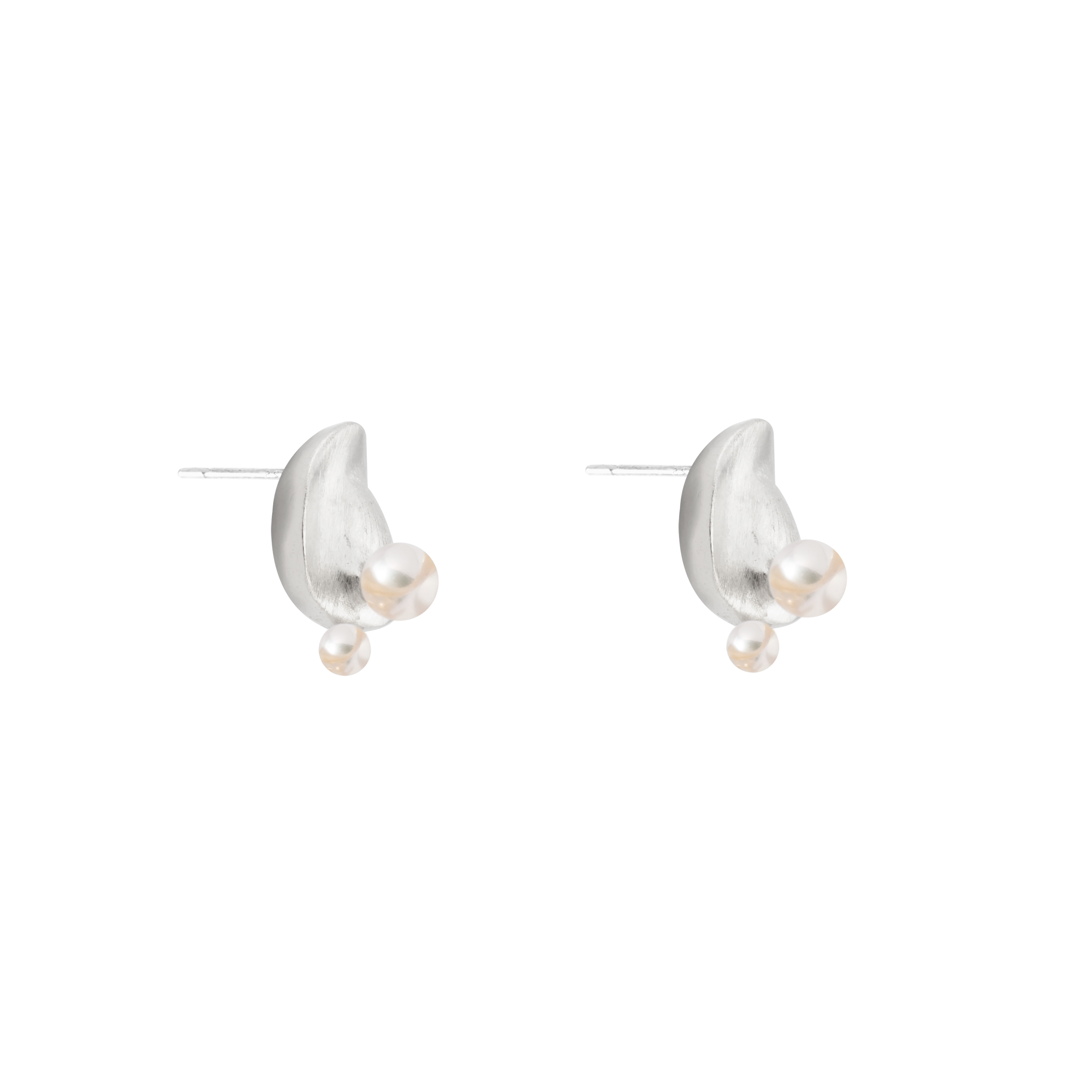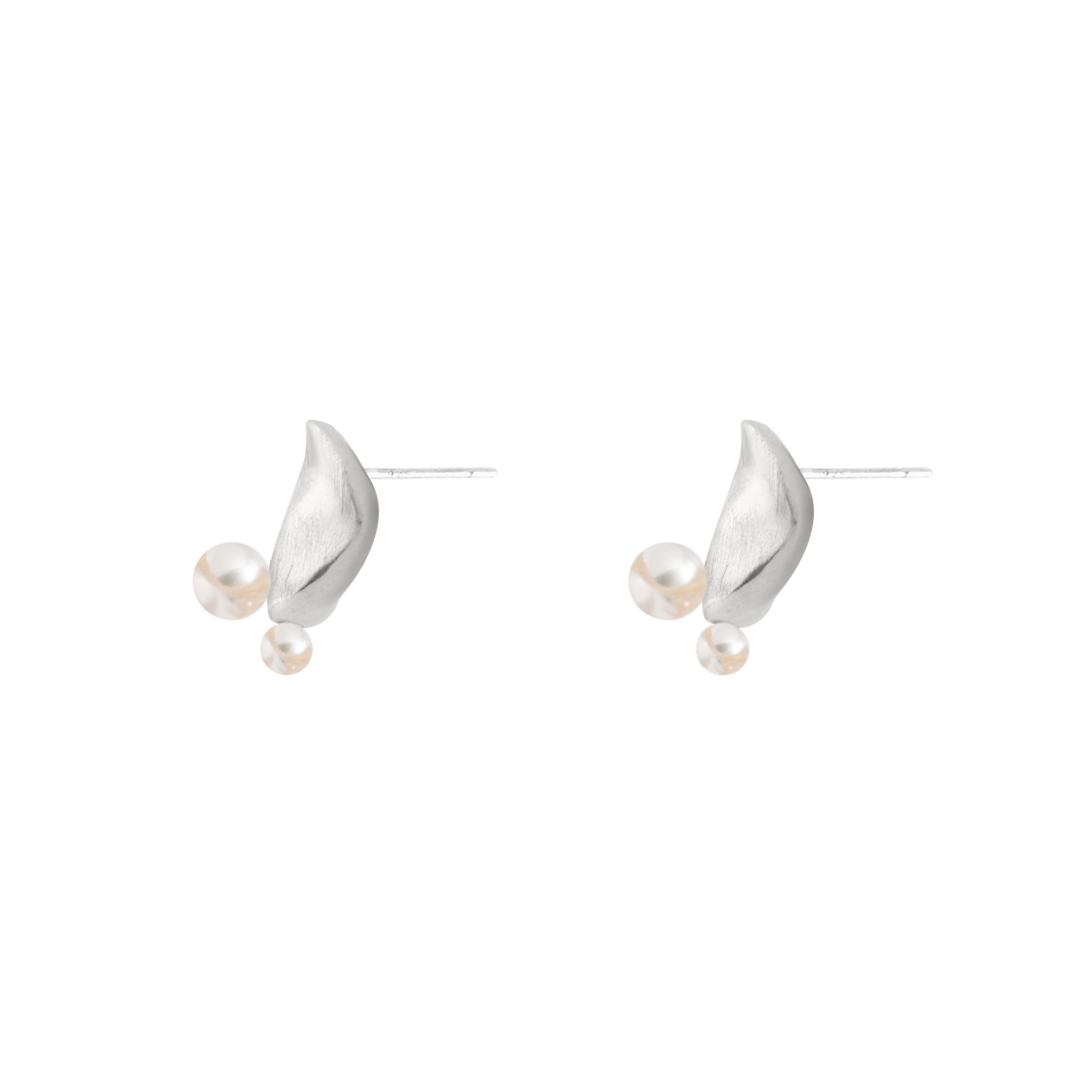 Pennywort|葉畔銀色珍珠耳環(可改夾式)
