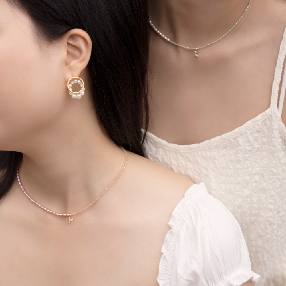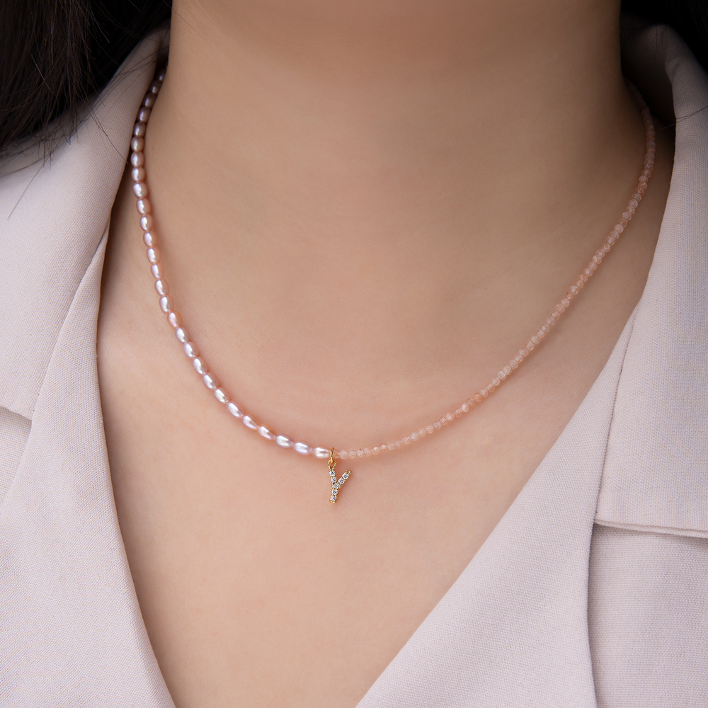 Relationship|粉珍珠太陽石閨蜜項鍊(可加購鋯鑽字母)