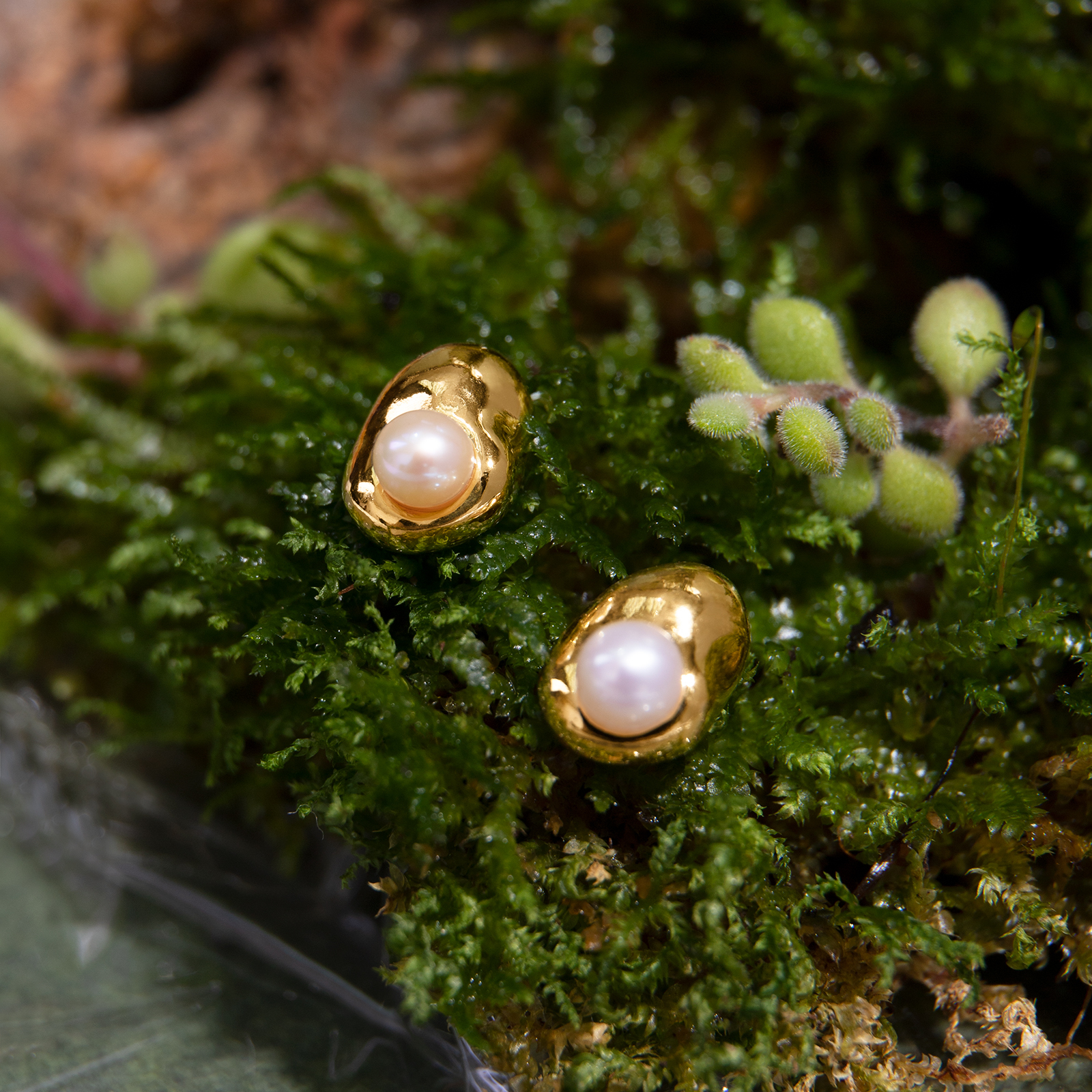Pod | 祈願種子珍珠鍍金耳環(可改夾式)