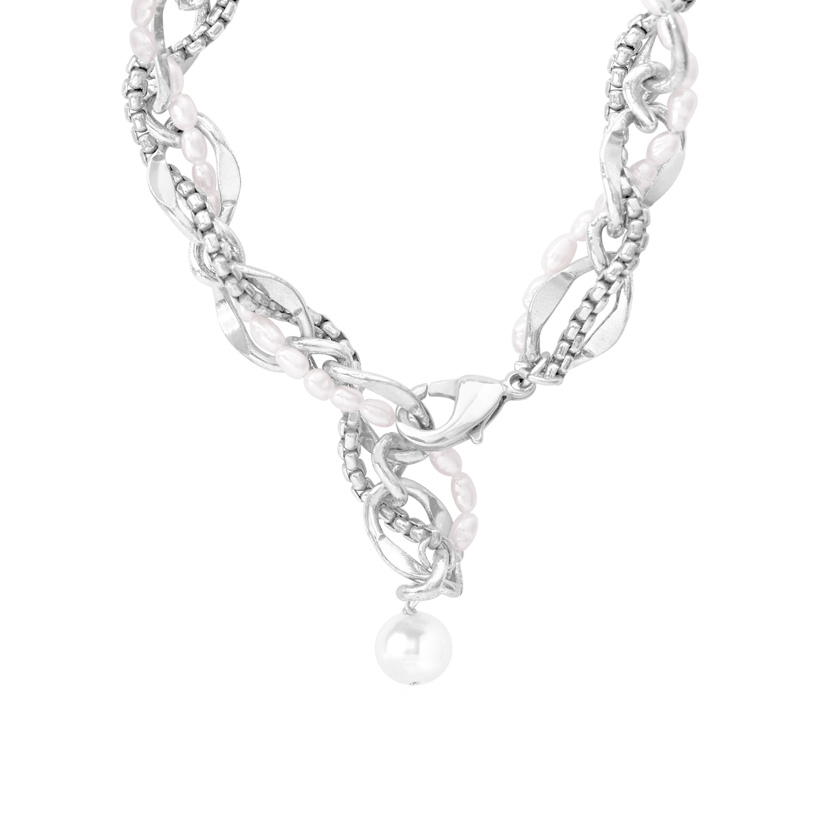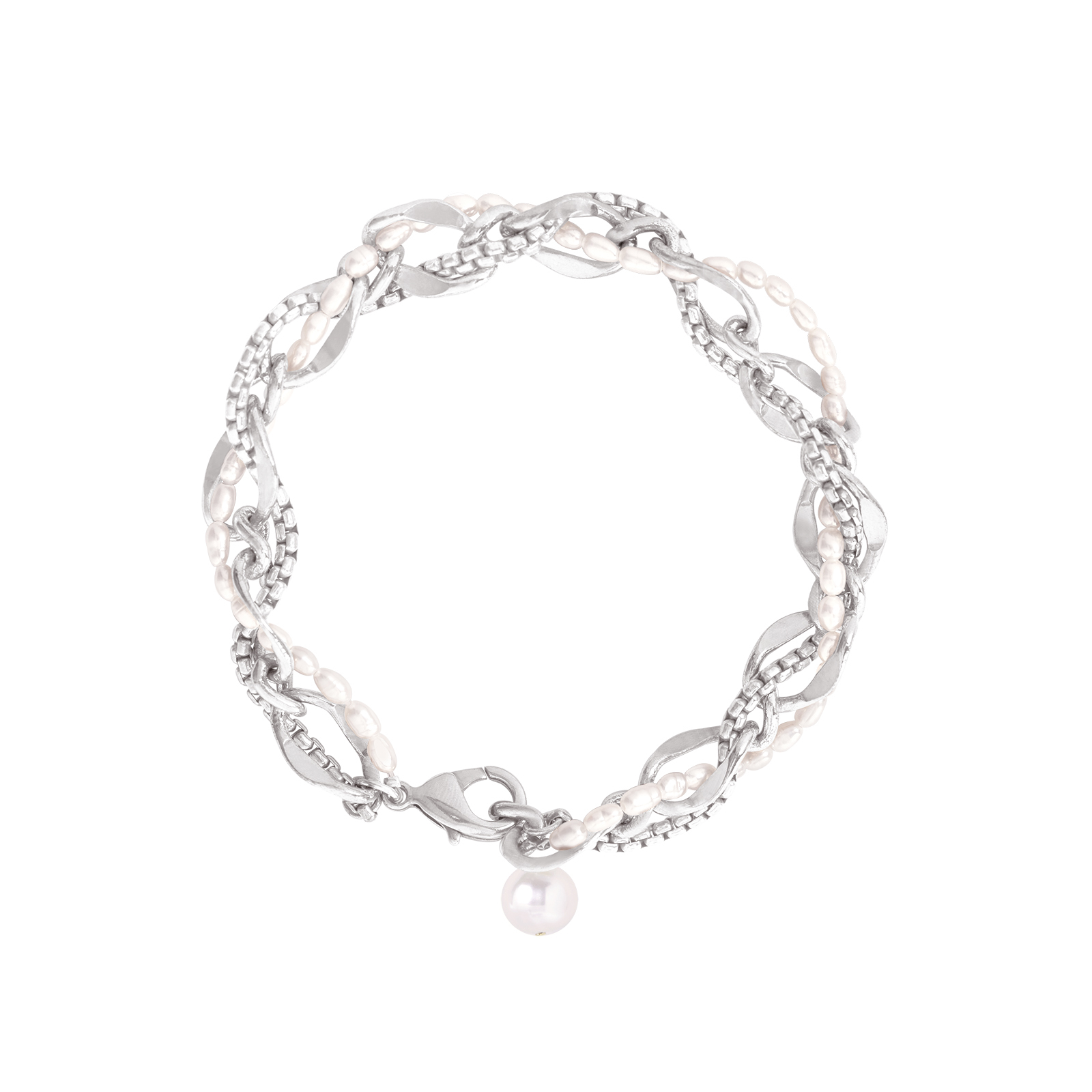 Mesh|銀色編織鎖鍊珍珠手環