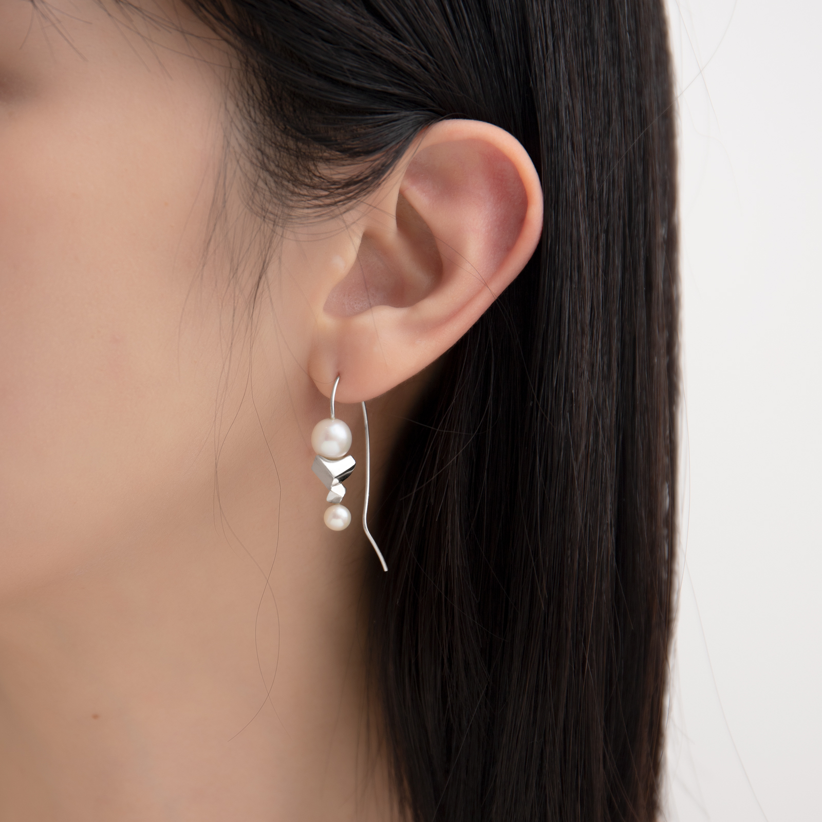 Soft | 俐落不規則珍珠長耳環 (單支)