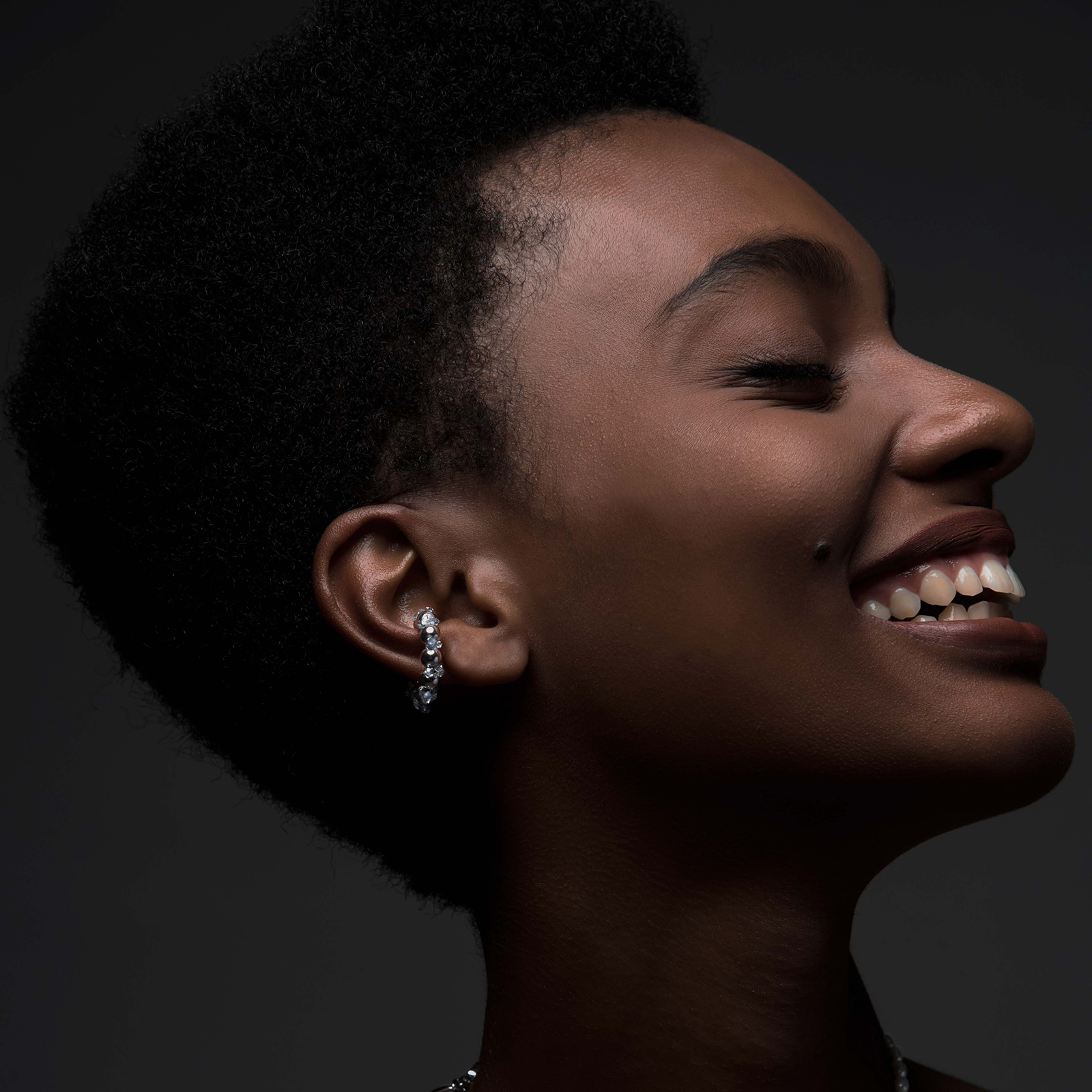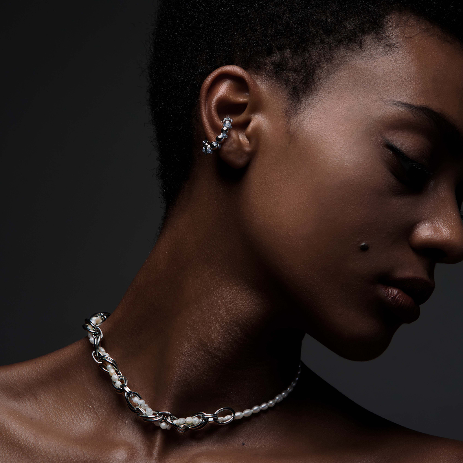 Soft | 銀色雪花赫基蒙水晶單耳夾