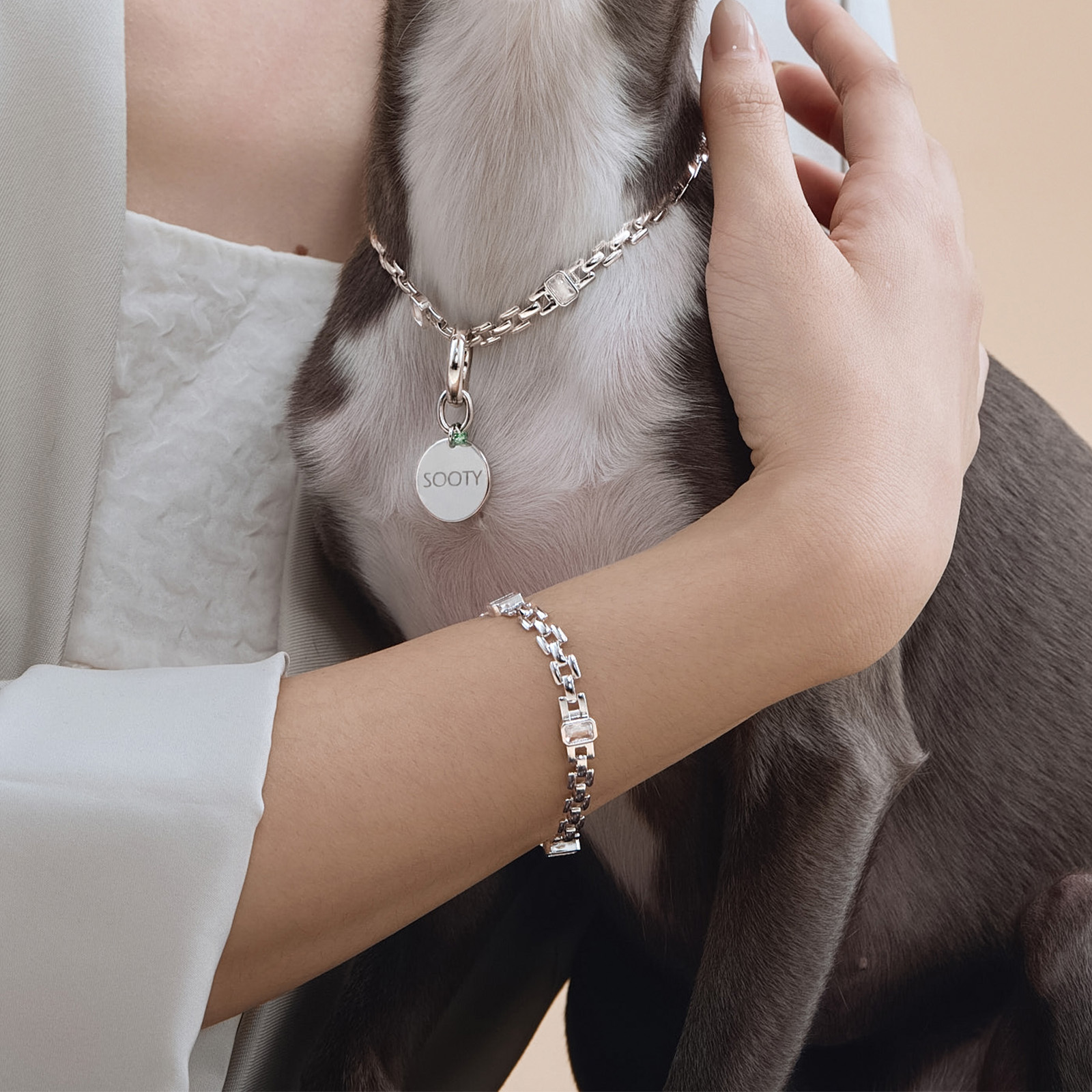Matching pet necklace: Soul Rectangular Zircon Pet Necklace.